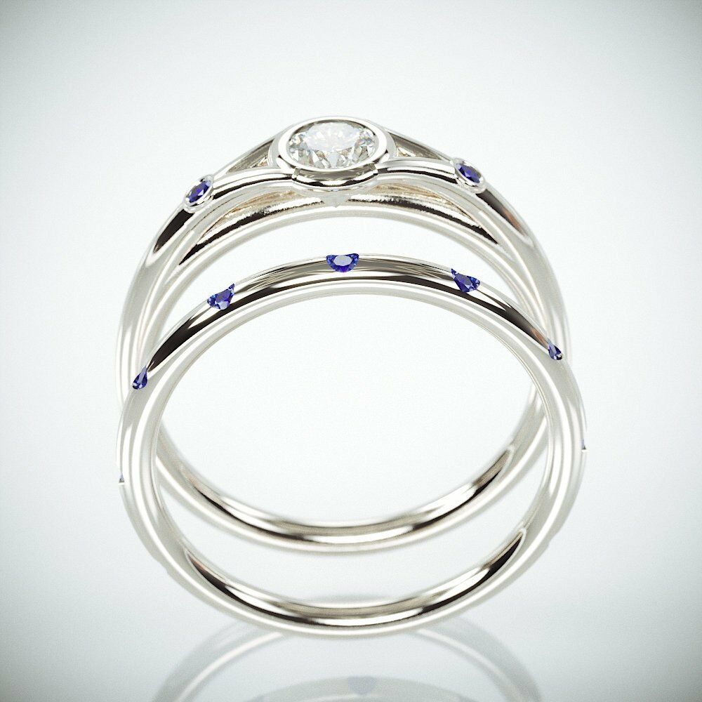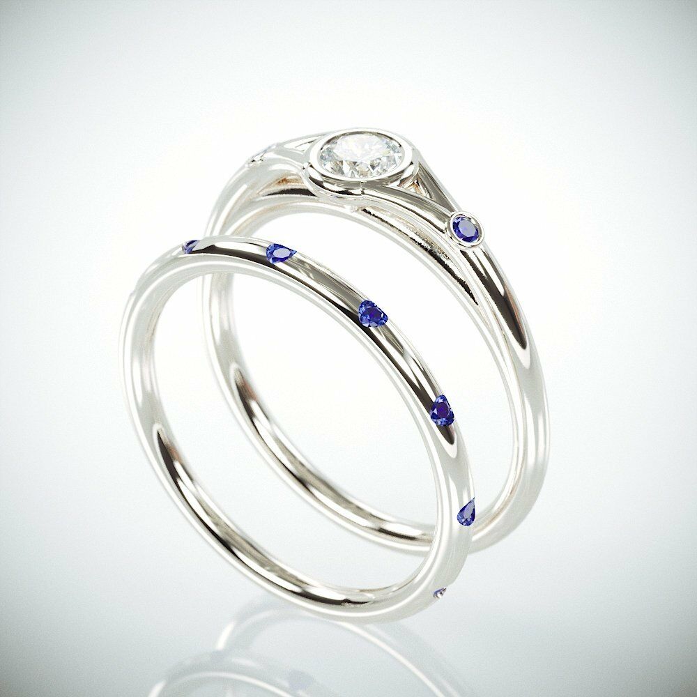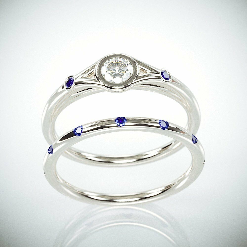 1.75Ct Round Cut Diamond Sapphire Bridal Set Minimalist Ring 14K White Gold Over