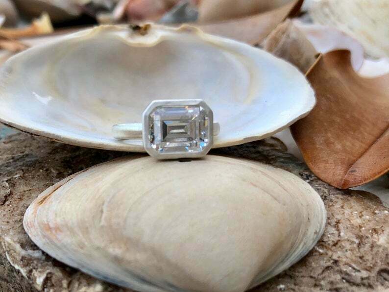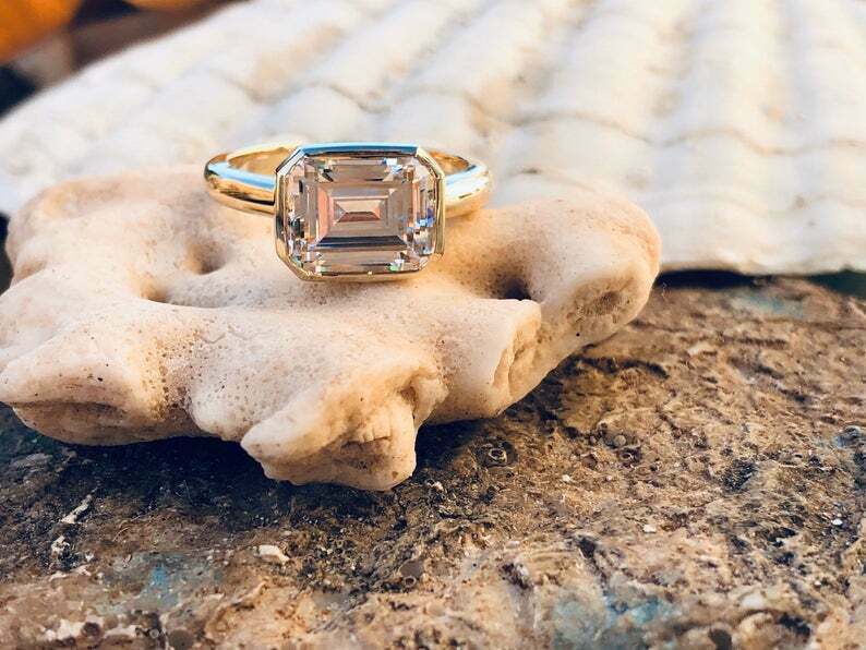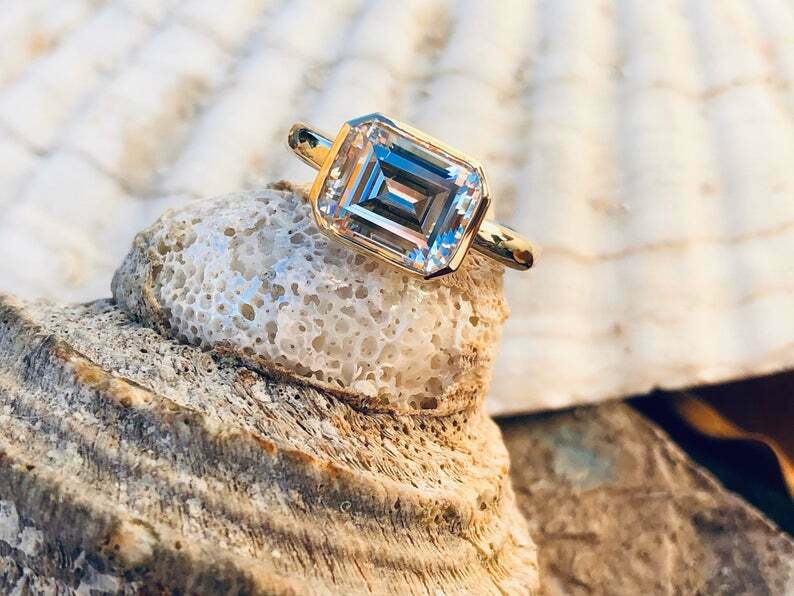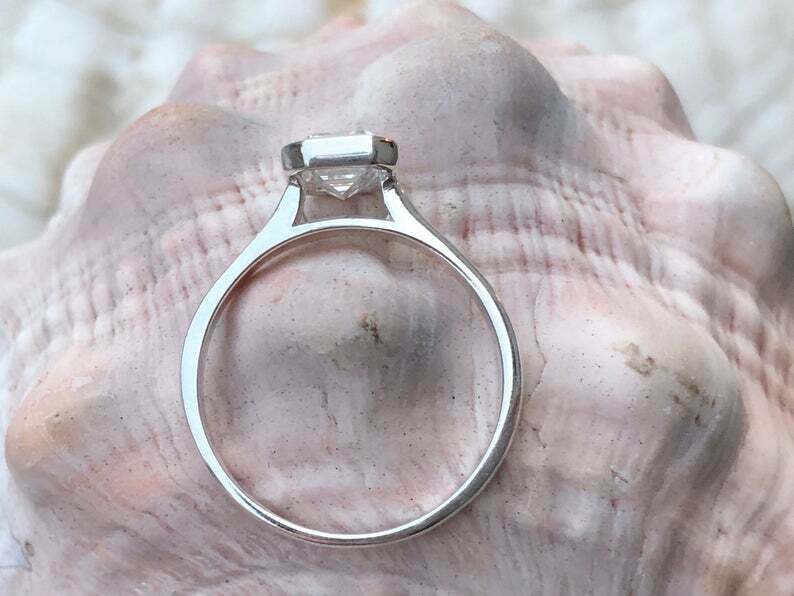 1.76ct Engagement Ring Emerald Cut Diamond Bezel Set Solitaire Design 14k White Gold Finish