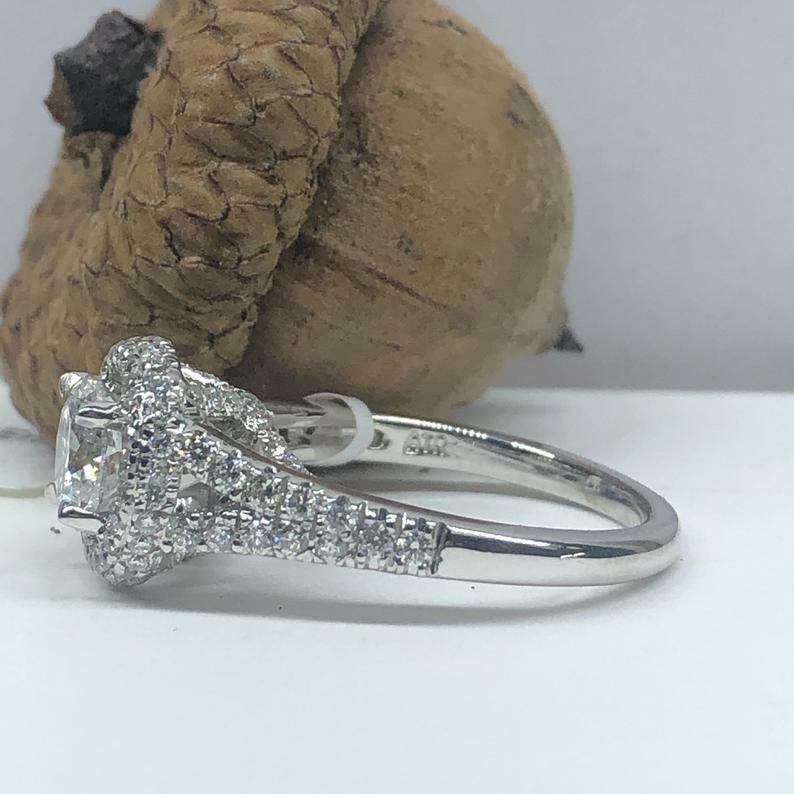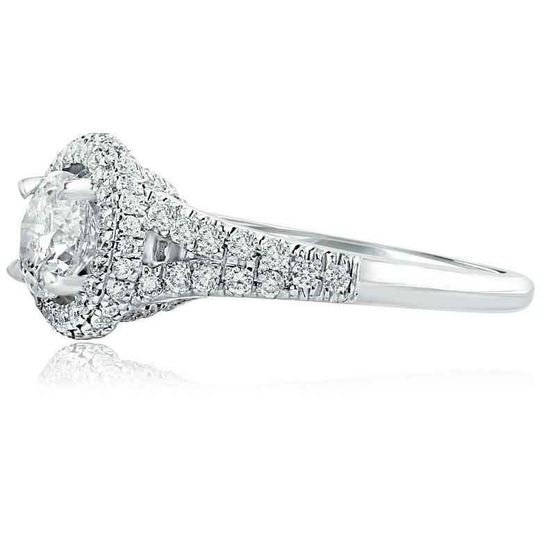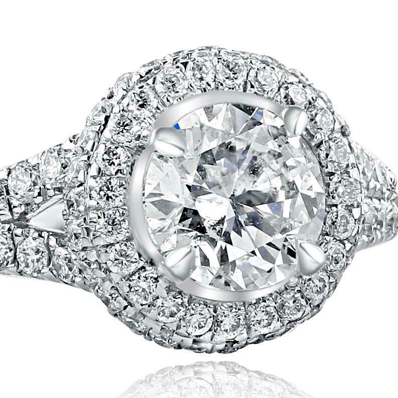 1.77ct Round Cut Diamond Engagement Ring Split Shank Dual Halo 14k White Gold Finish