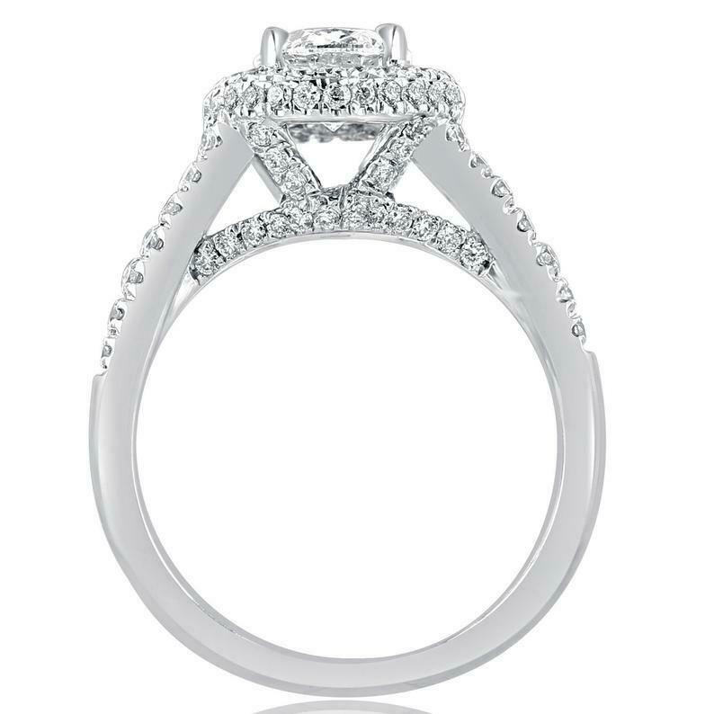 1.77ct Round Diamond Engagement Ring Split Shank Dual Halo 14k White Gold Finish