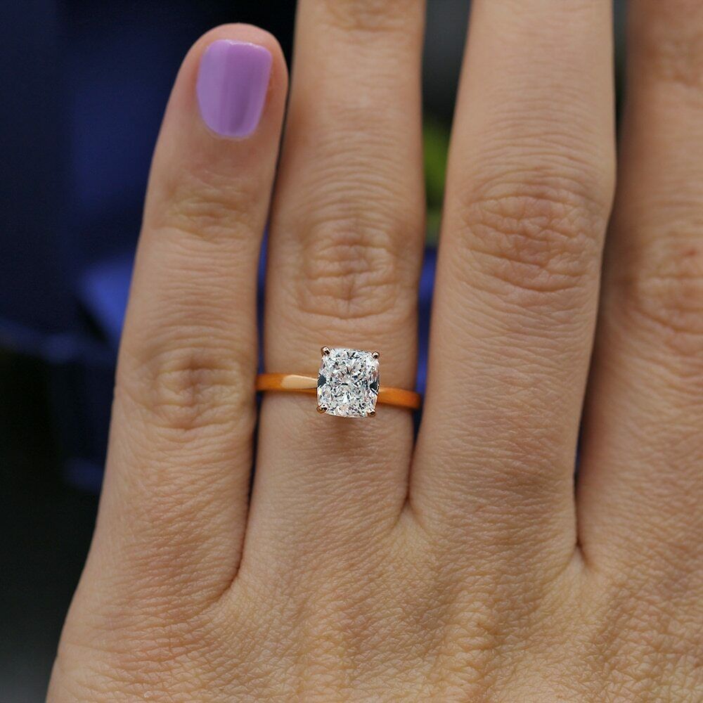 1.7ct Cushion Cut Diamond Engagement Ring 14k Rose Gold Finish Solitaire Wedding