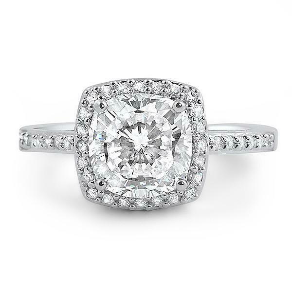 1.7ct Cushion Diamond Engagement Ring Halo Accents Solitaire 14k White Gold Over