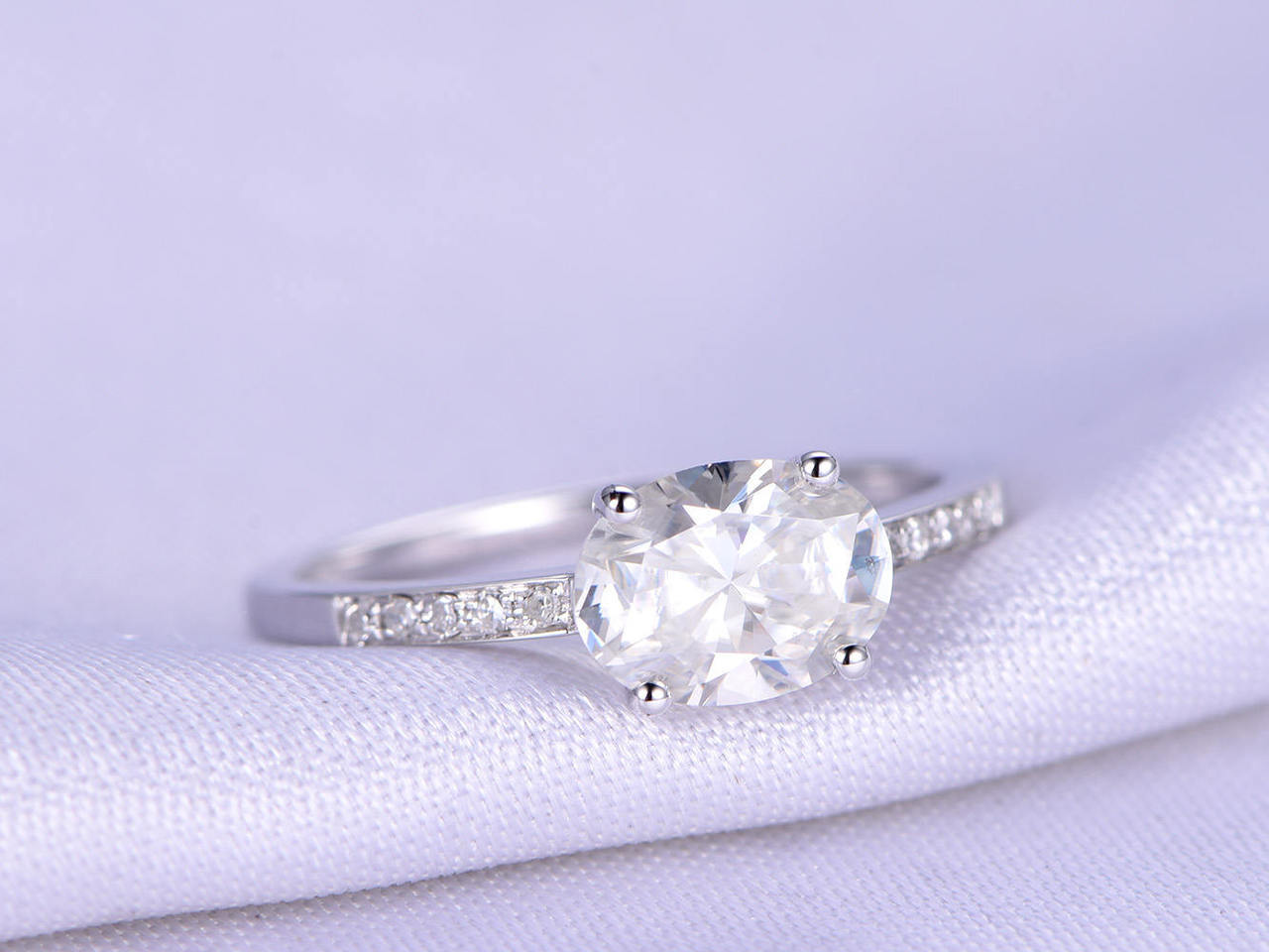 1.7ct East West Oval Cut Diamond Accents Engagement Ring 14k White Gold Finish