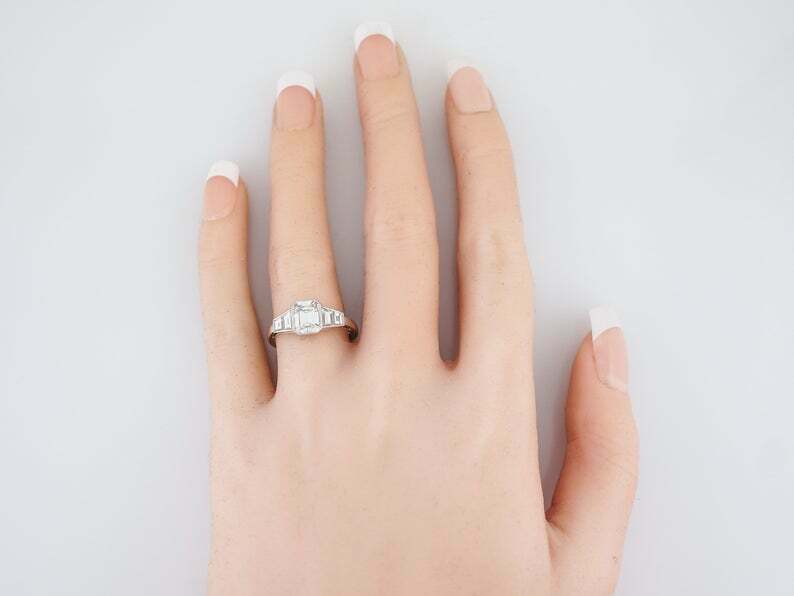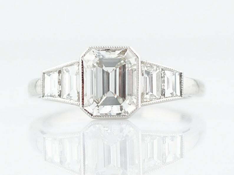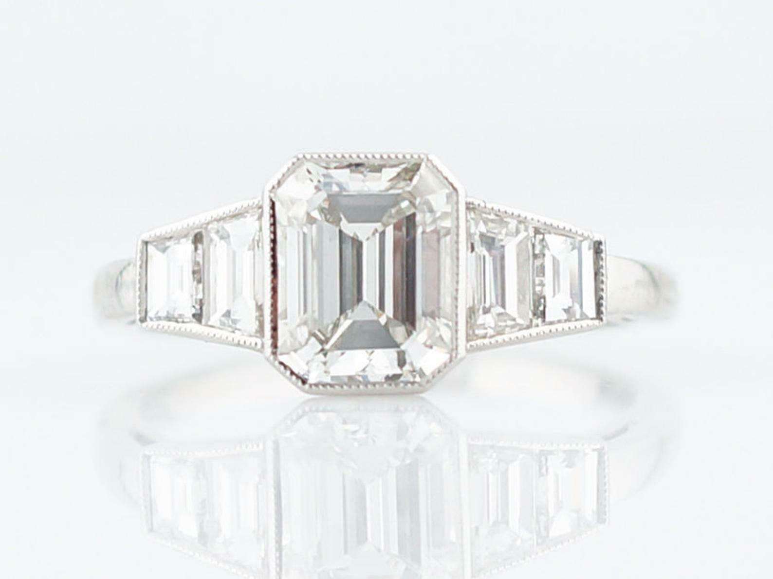 1.7ct Emerald Cut Diamond Solitaire Ring 14k White Gold Finish Trapezoid Accents