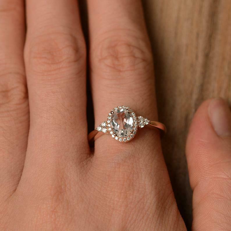 1.7ct Engagement Ring Oval Cut Diamond Round Accents Halo 14k Rose Gold Finish
