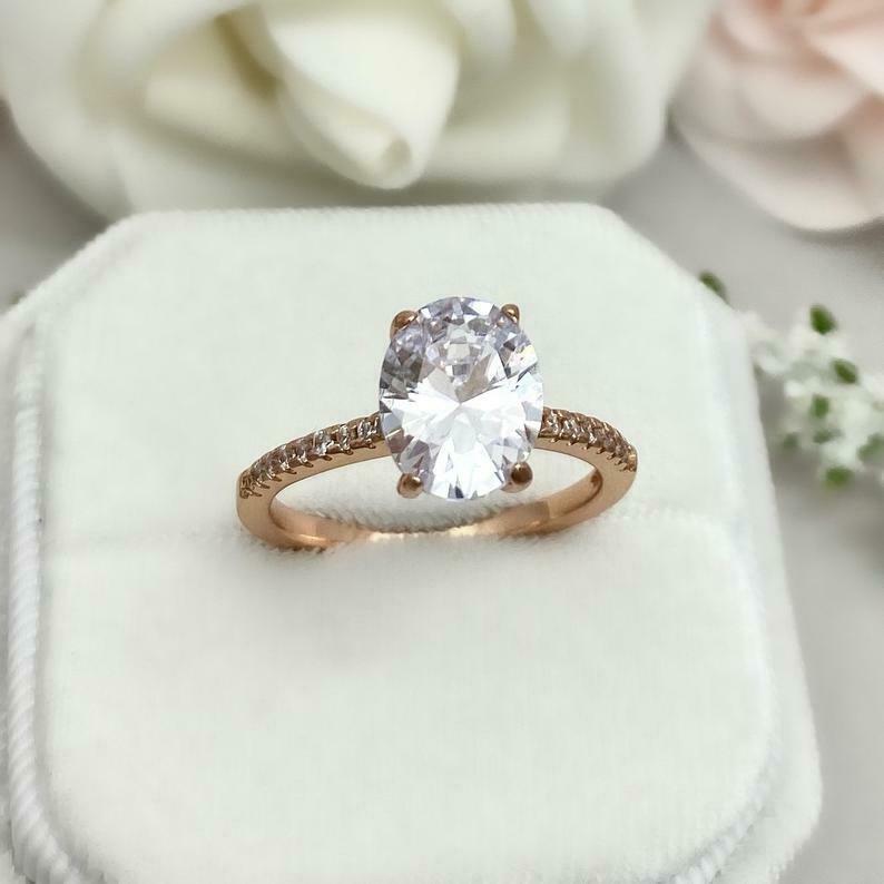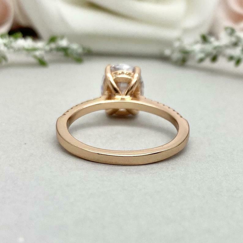 1.7ct Engagement Ring Oval Cut Diamond Solitaire with Accent 14k Rose Gold Finish