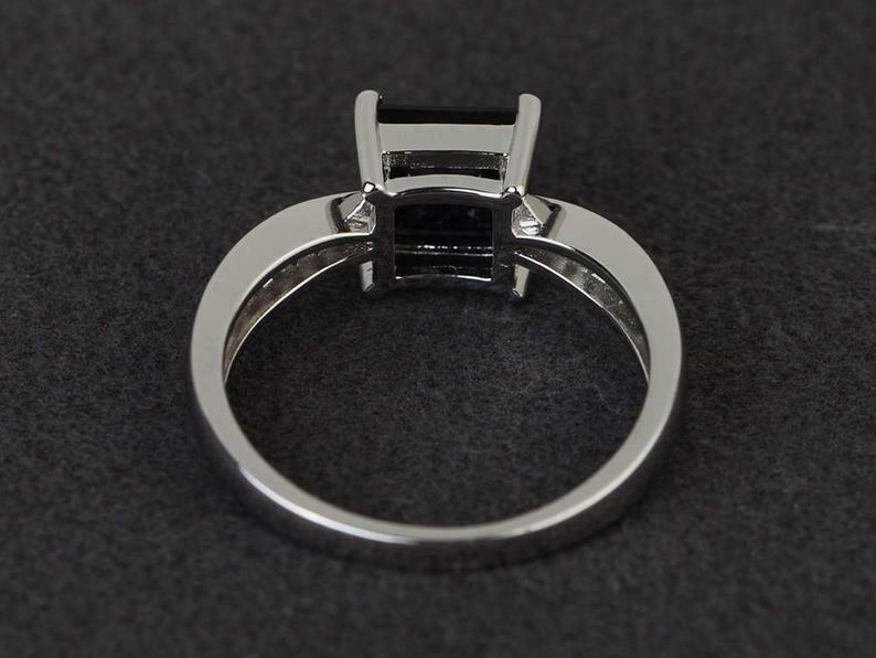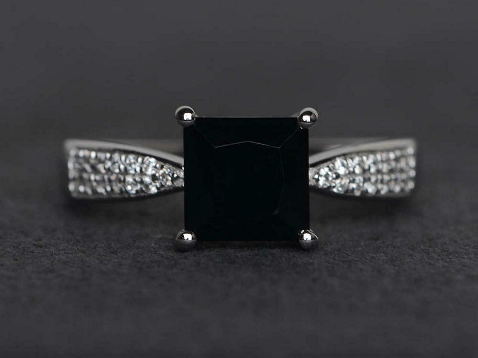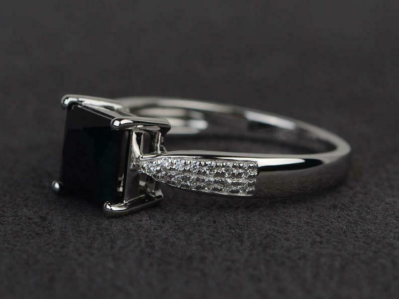 1.7ct Engagement Ring Princess Cut Black Diamond Accents Solitaire 14k White Gold Over