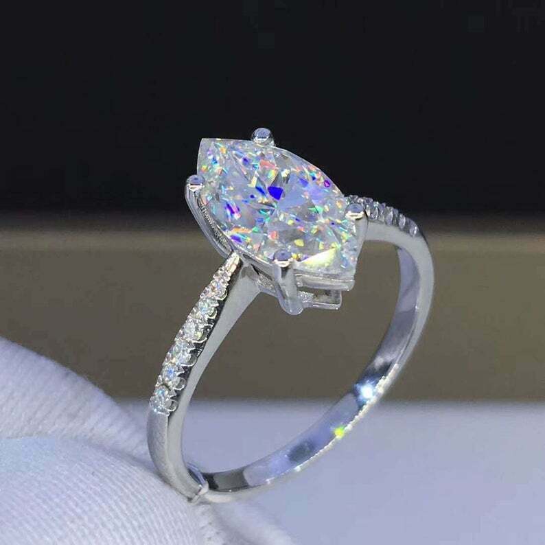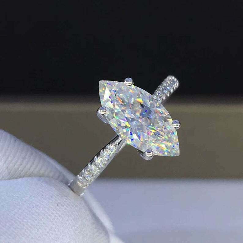 1.7ct Marquise Diamond Engagement Ring Solitaire with Accents 14k WhiteGold Over
