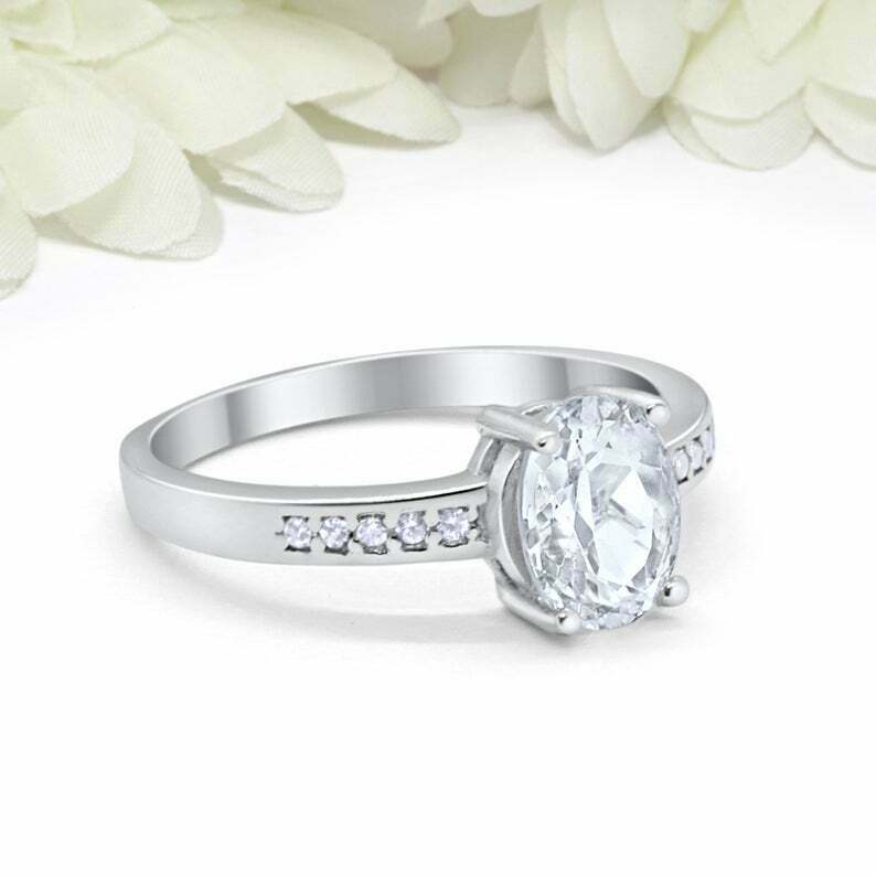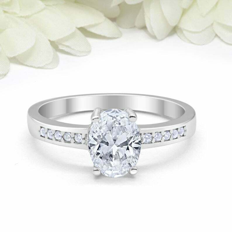 1.7ct Oval Cut Diamond Engagement Ring Solitaire with Accent 14k White Gold Over