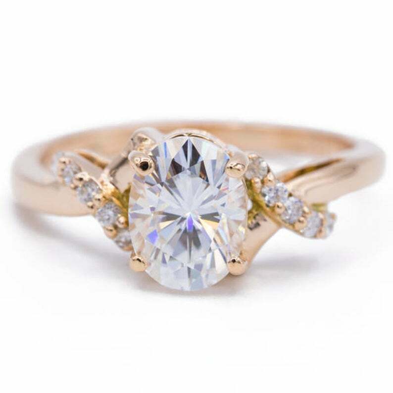 1.7ct Oval Cut Diamond Engagement Ring Twist Shank Solitaire 14k RoseGold Finish