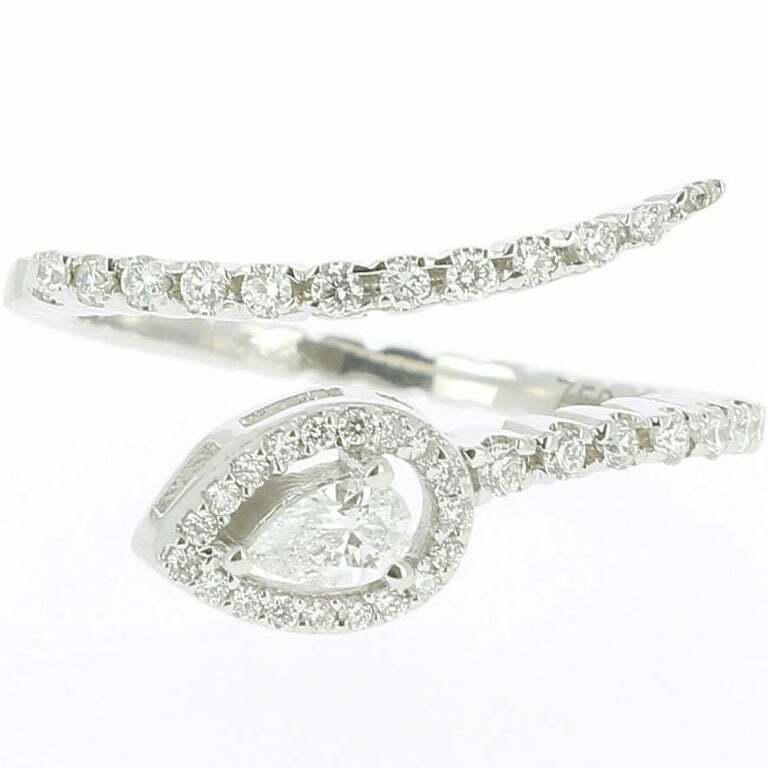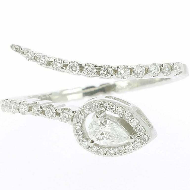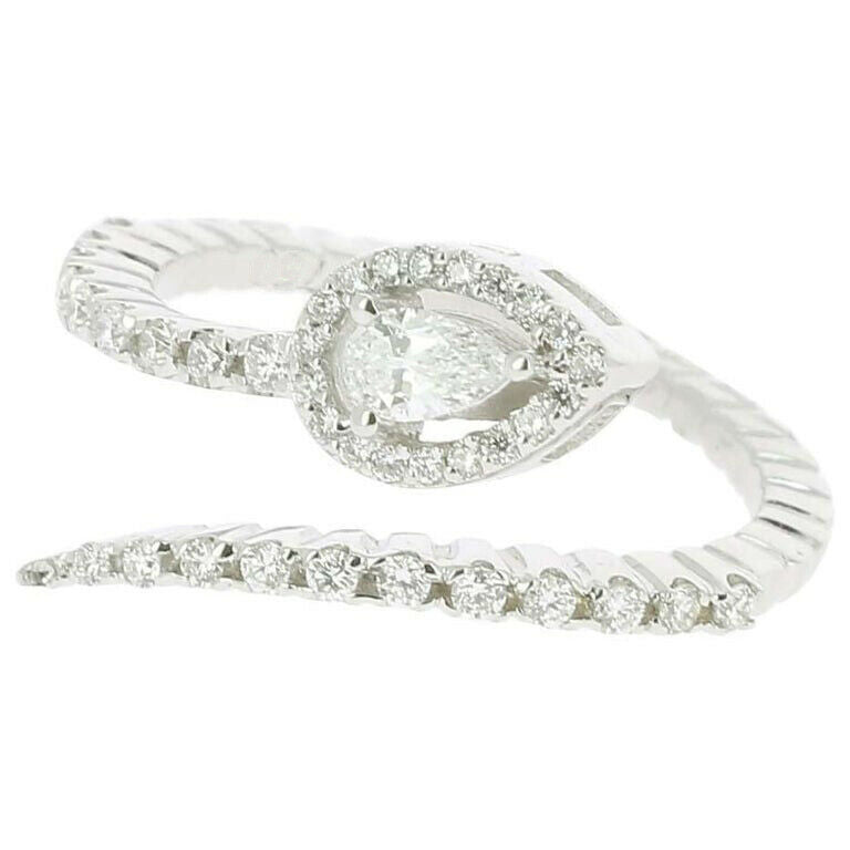 1.7ct Pear Cut Diamond Engagement Ring Halo Snake Bypass 14k White Gold Finish
