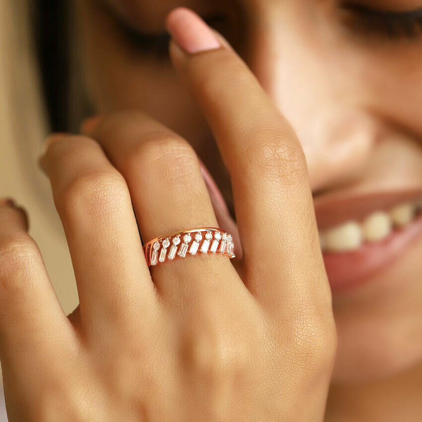 1.7ct Round Baguette Cut Diamond Cocktail Engagement Ring 14k Rose Gold Finish