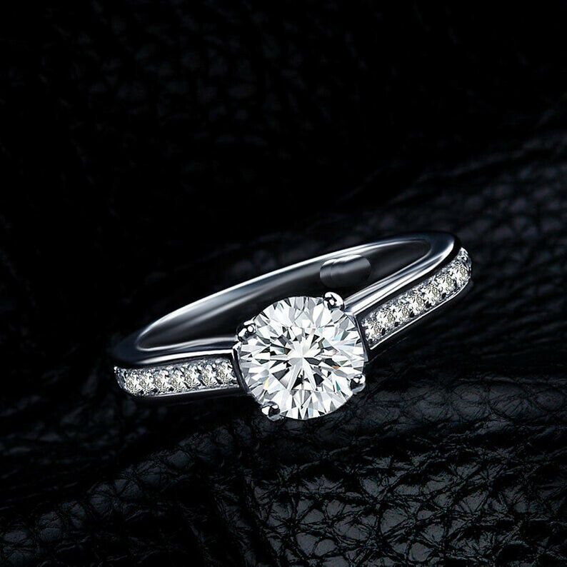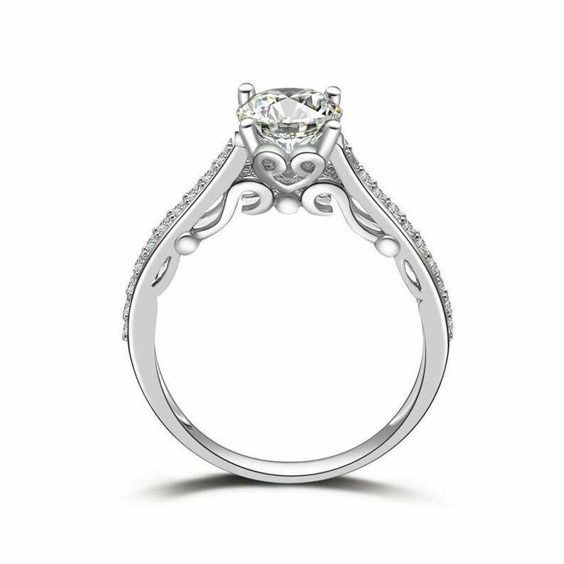 1.7ct Round Cut Diamond 4 Prong Solitaire with Accent Ring 14k White Gold Finish