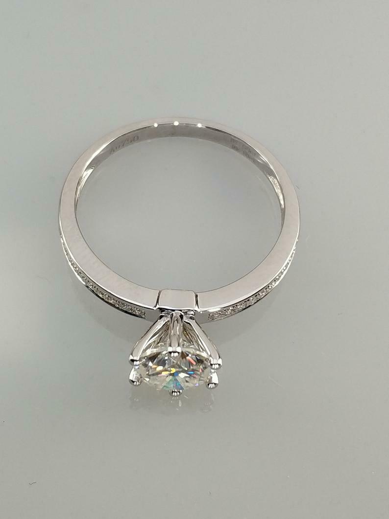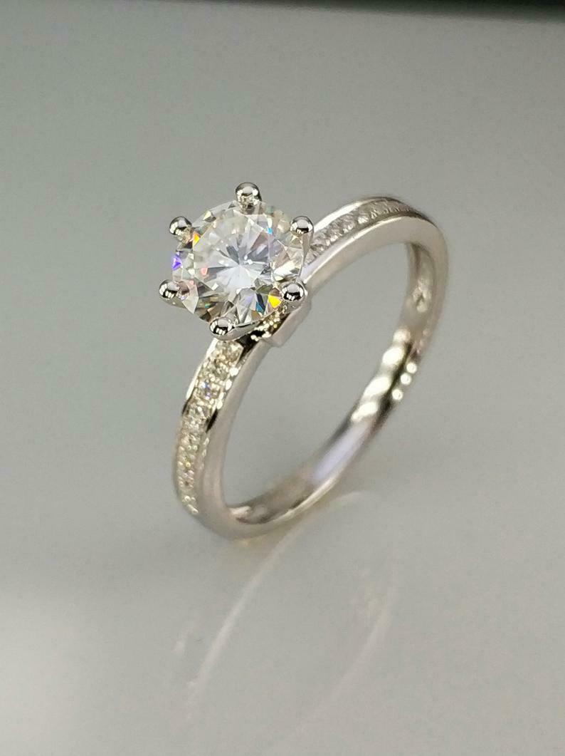 1.7ct Round Cut Diamond 6 Prong Solitaire with Accent Ring 14k White Gold Finish