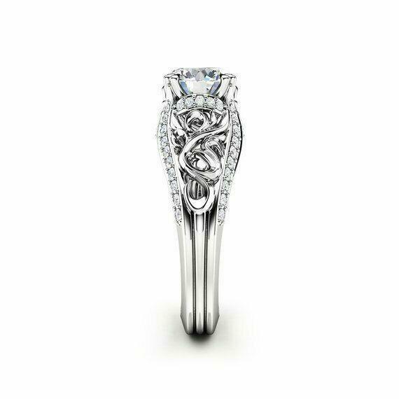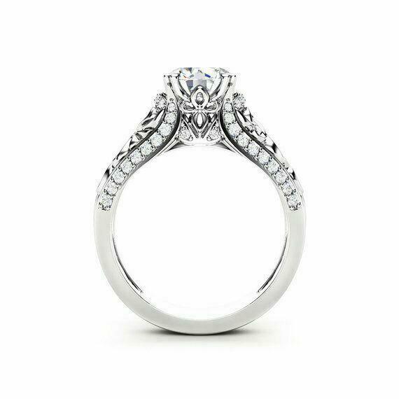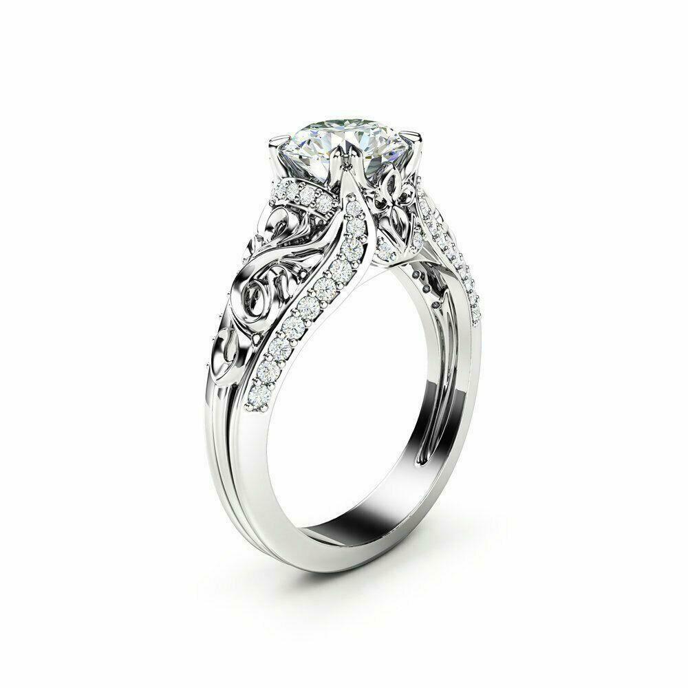 1.7ct Round Cut Diamond Engagement Ring 14k White Gold Finish Antique Vintage