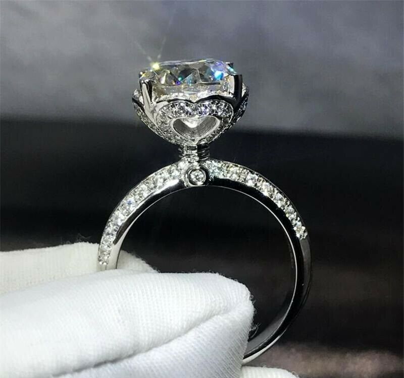 1.7ct Round Cut Diamond Engagement Ring 14k White Gold Finish Flower for Women