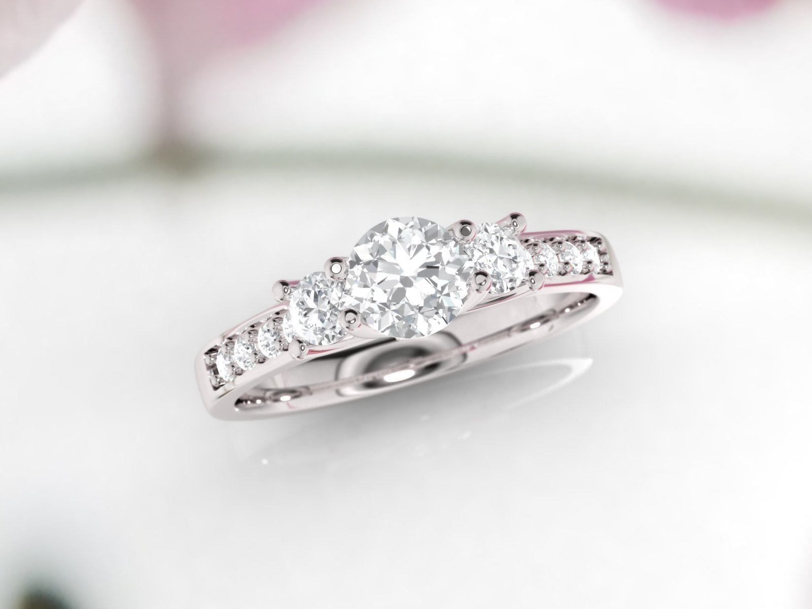 1.7ct Round Cut Diamond Engagement Ring 18k White Gold Finish Trilogy Solitaire
