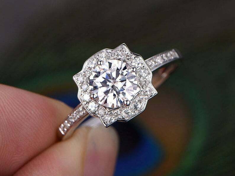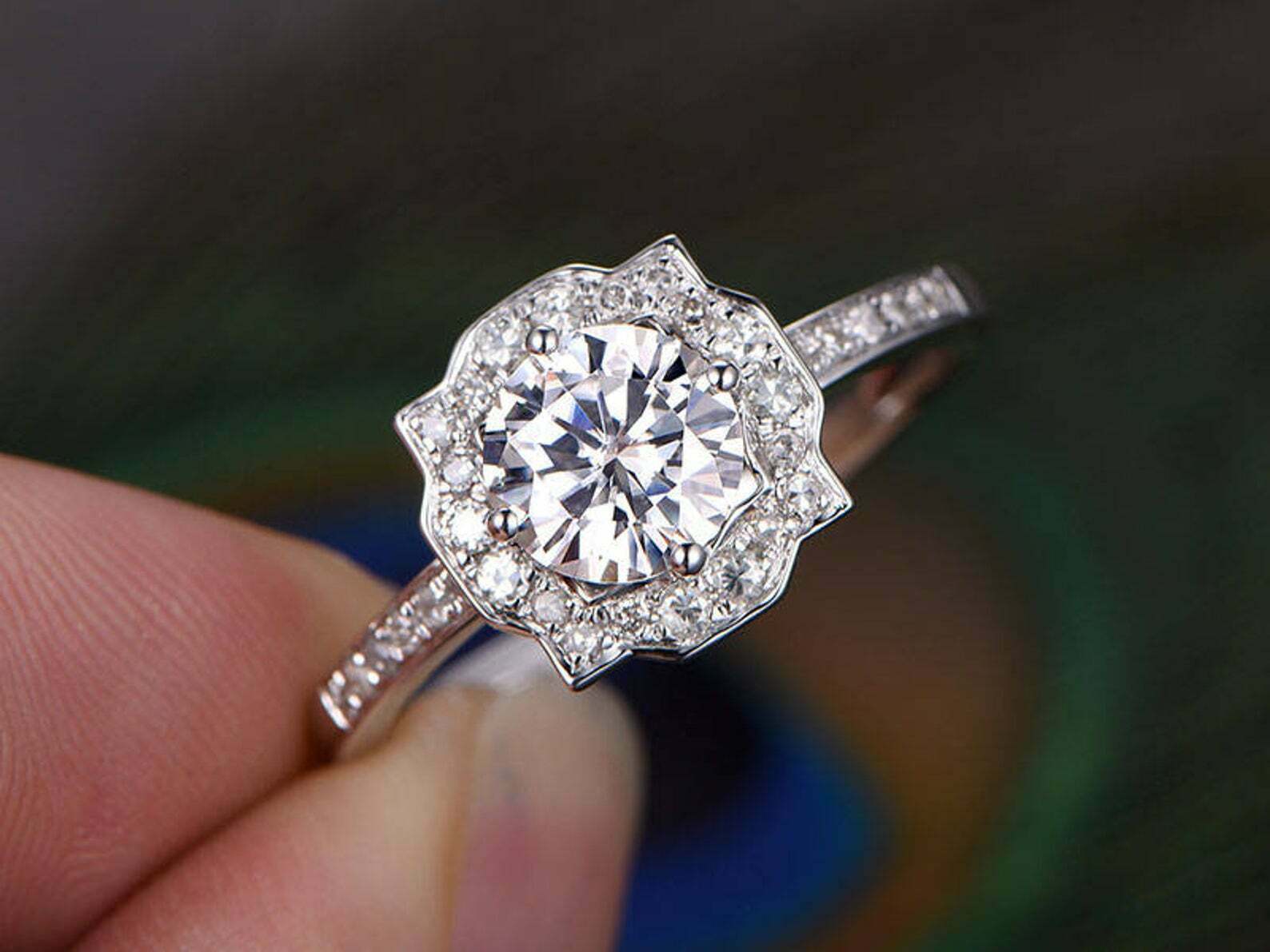 1.7ct Round Cut Diamond Engagement Ring Halo 14k White Gold Finish with Accents