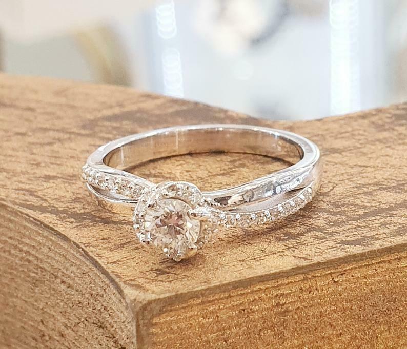 1.7ct Round Cut Diamond Engagement Ring Split Band Floral 14k White Gold Finish