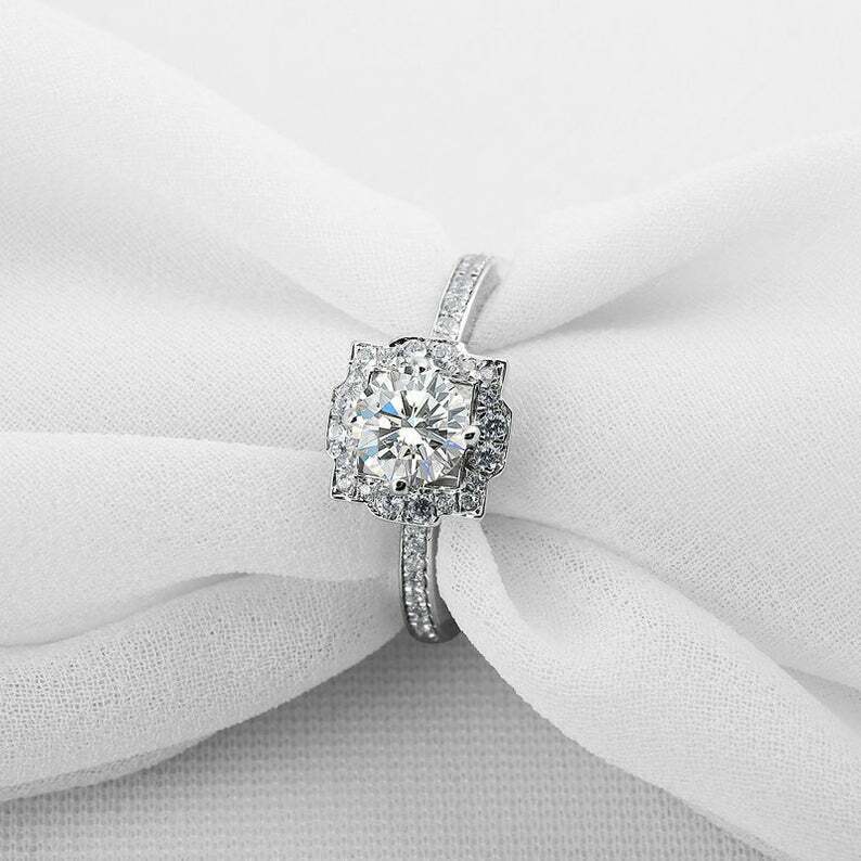 1.7ct Round Cut Diamond Halo Solitaire with Accents Ring 14k White Gold Finish