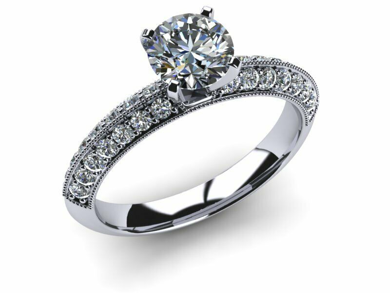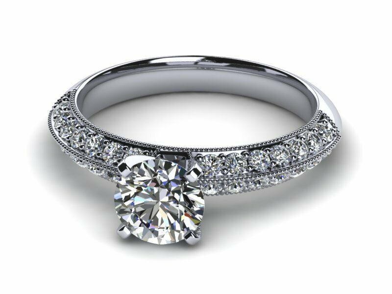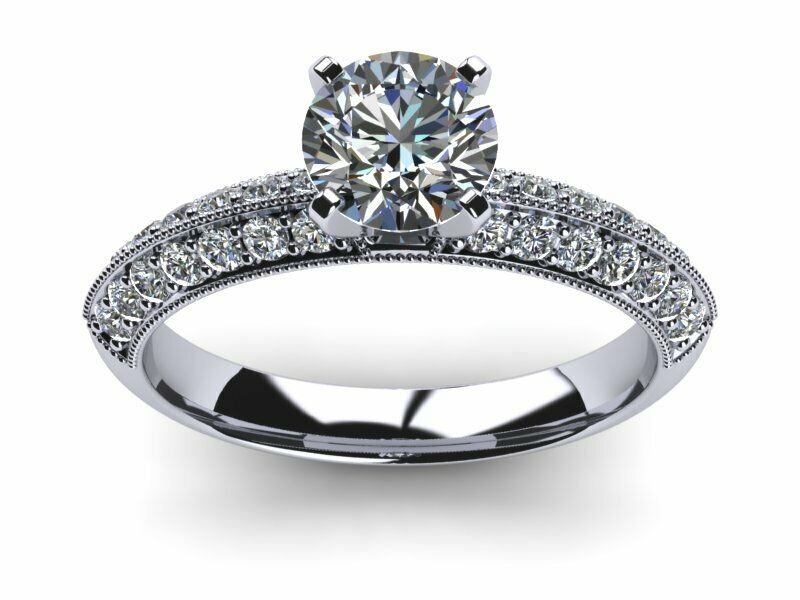 1.7ct Round Cut Diamond Milgrain Solitaire Engagement Ring 14k White Gold Finish