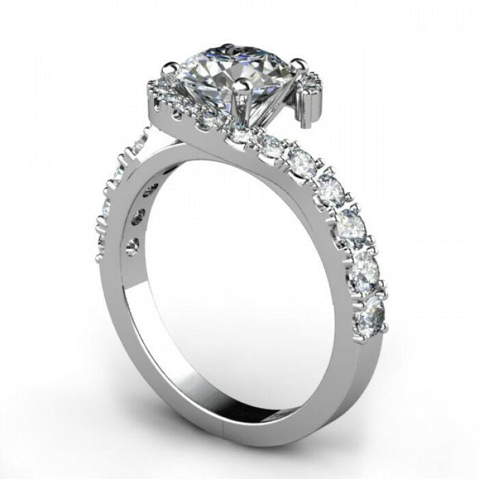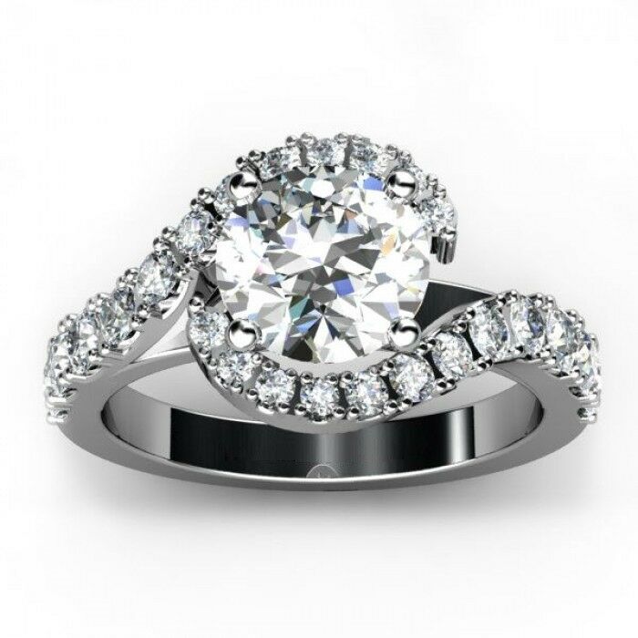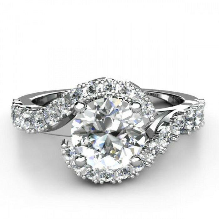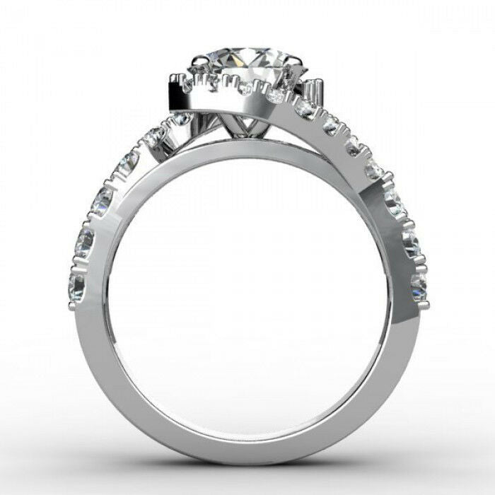 1.7ct Round Cut Diamond Swirl Twist Solit Engagement Ring 14k White Gold Finish