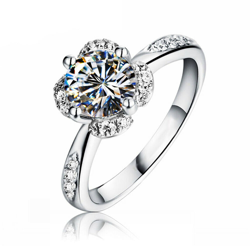 1.7ct Round Diamond Engagement Ring 14k White Gold Finish Halo Accent Solitaire