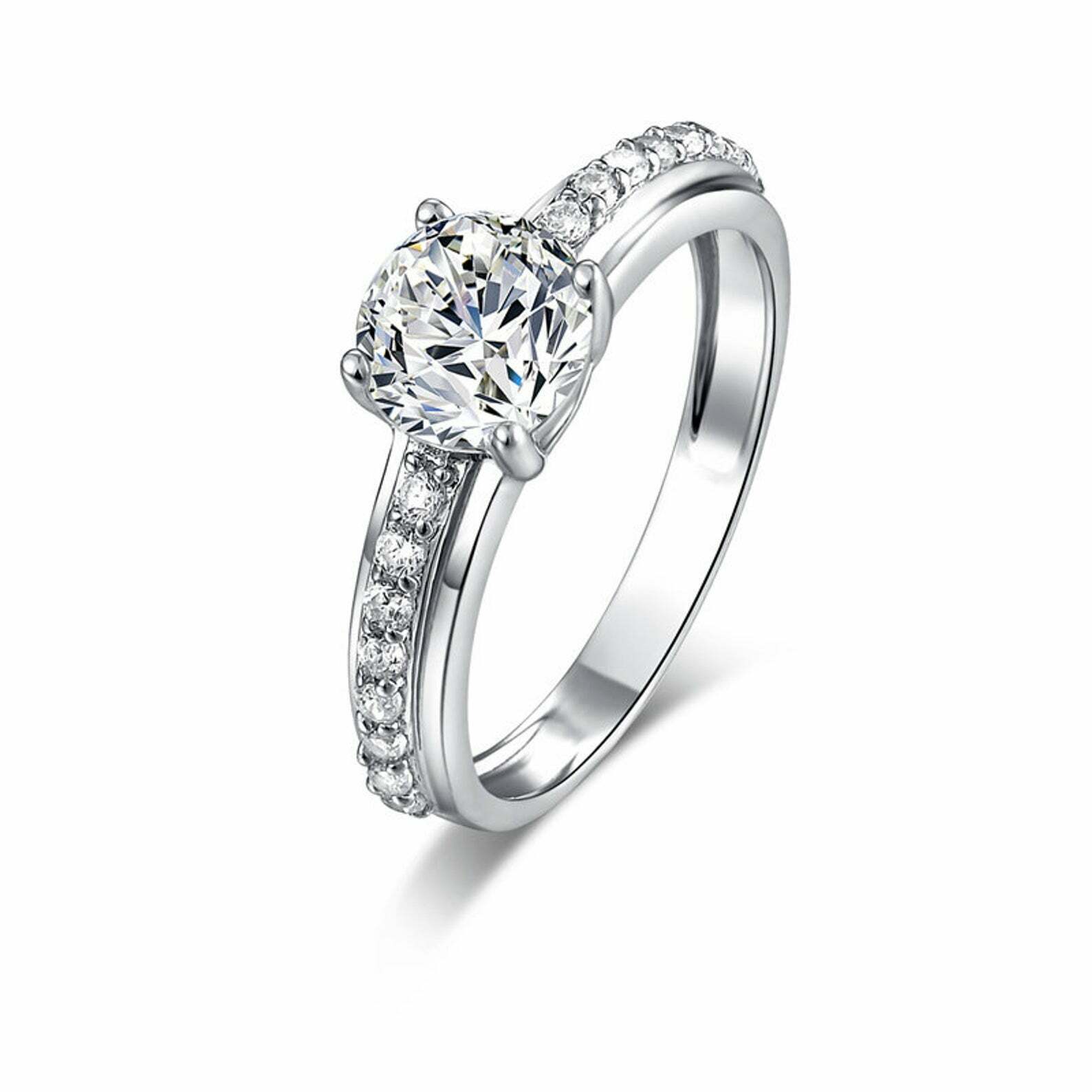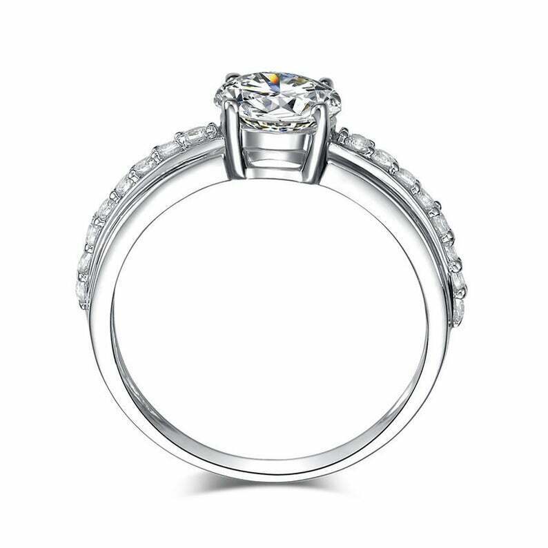 1.7ct Round Diamond Engagement Ring Solitaire with Accents 14k White Gold Finish