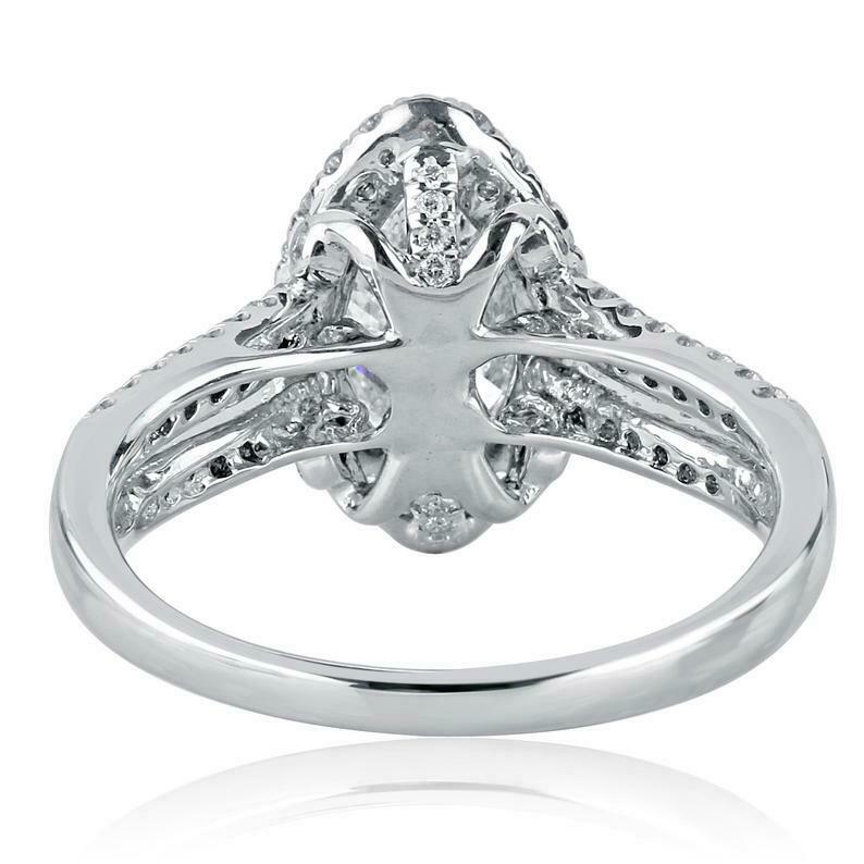 1.87ct Marquise Cut Diamond Engagement Ring Split Shank Halo 14k White Gold Over