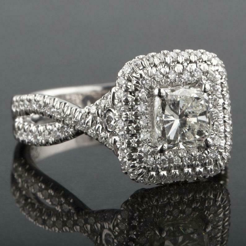 1.88ct Cushion Diamond Engagement Ring Dual Halo Split Band 14k White Gold Over