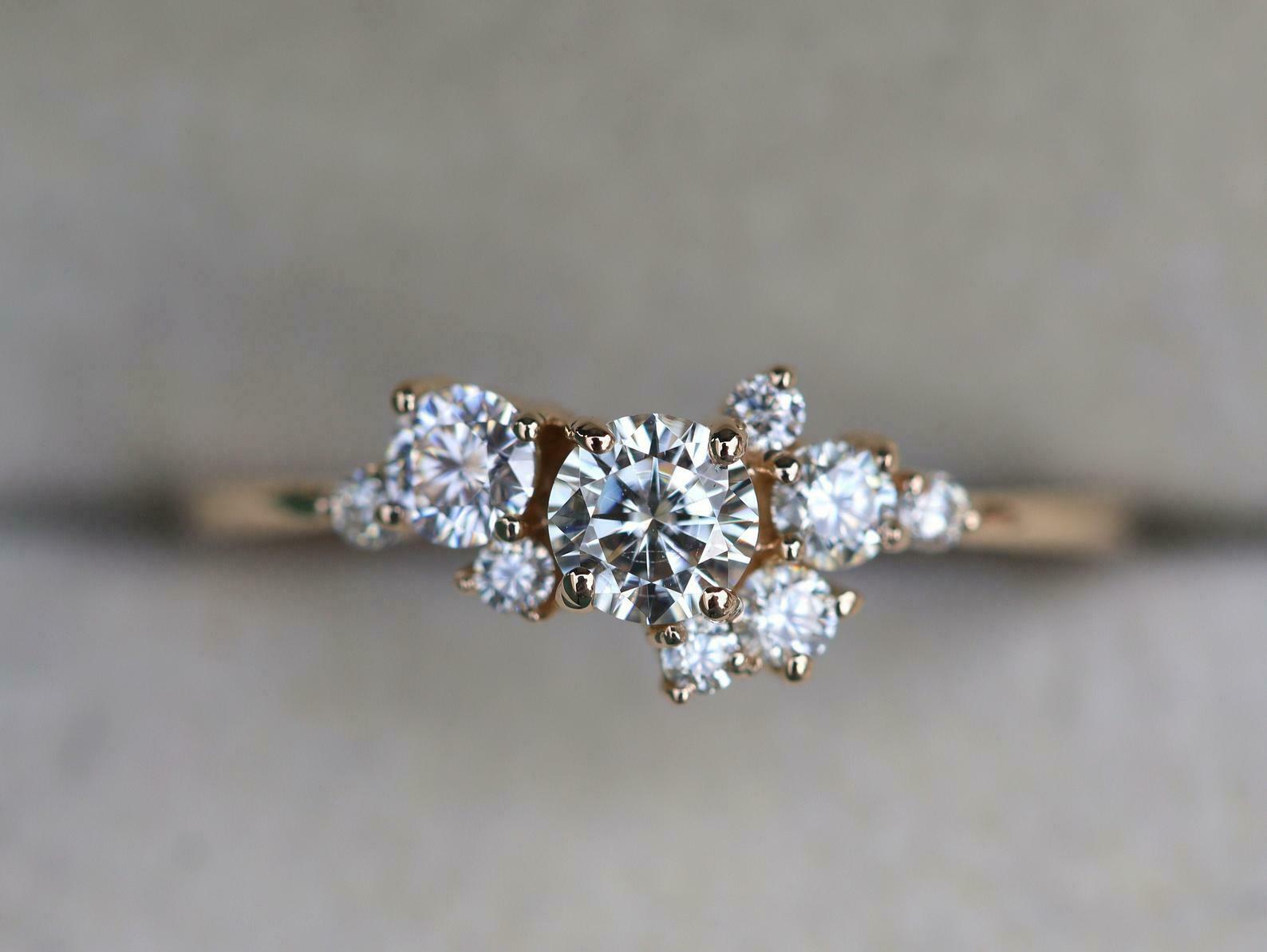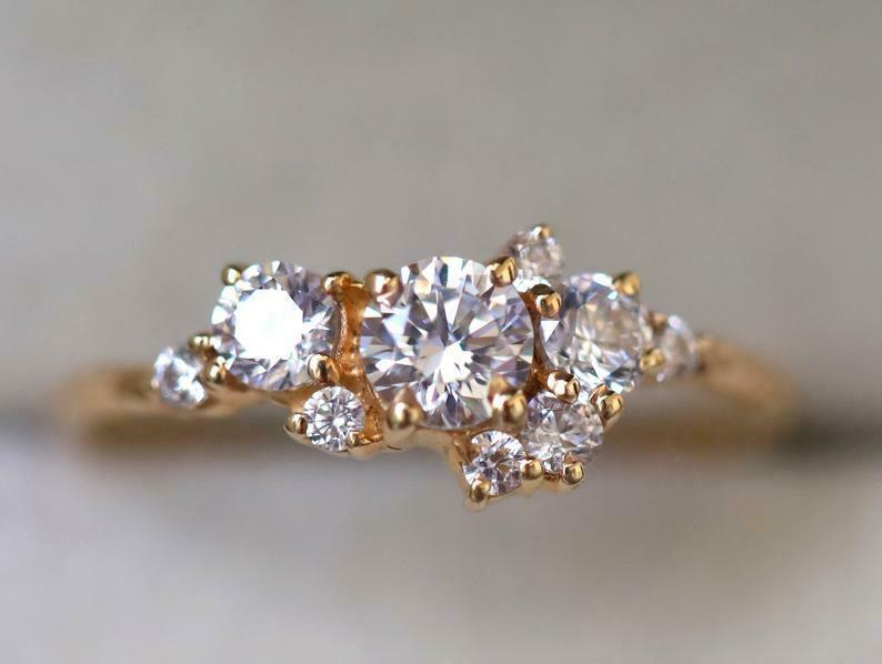 1.8ct Engagement Ring Round Cut Diamond Cluster Design 14k Yellow Gold Finish