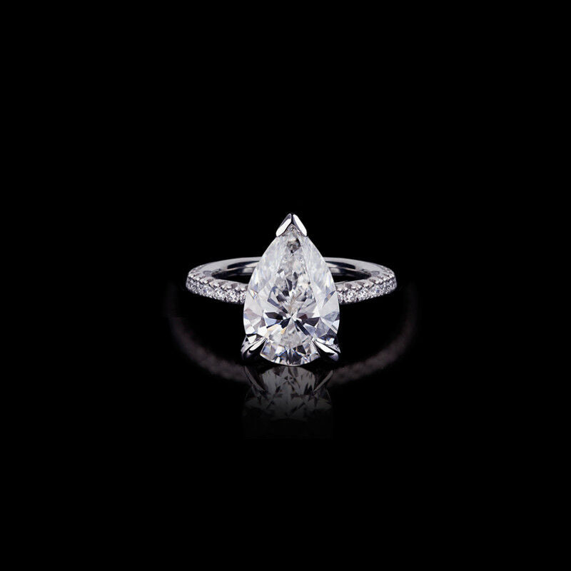 1.8ct Pear Cut Diamond Accent Band Solitaire Engagement Ring 14k White Gold Over