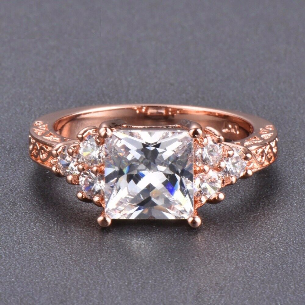 1.8ct Princess Cut Diamond Engagement Ring 14k Rose Gold Finish Antique Vintage