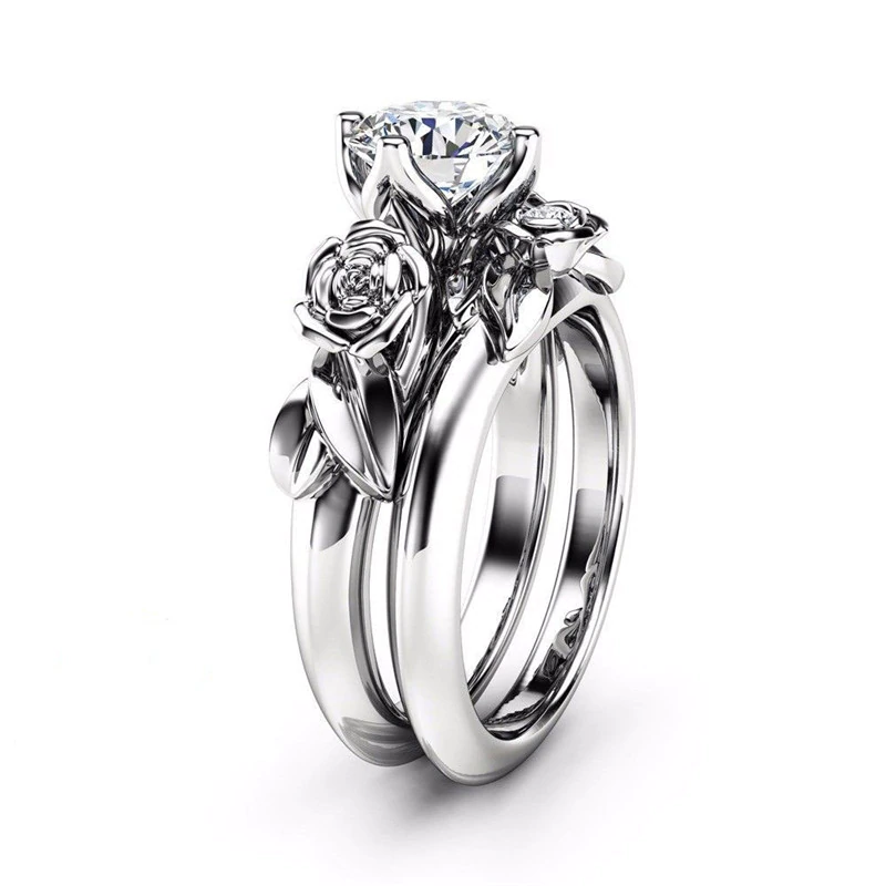 1.8ct Round Cut Diamond Engagement Ring 14k White Gold Finish Floral Bridal Set