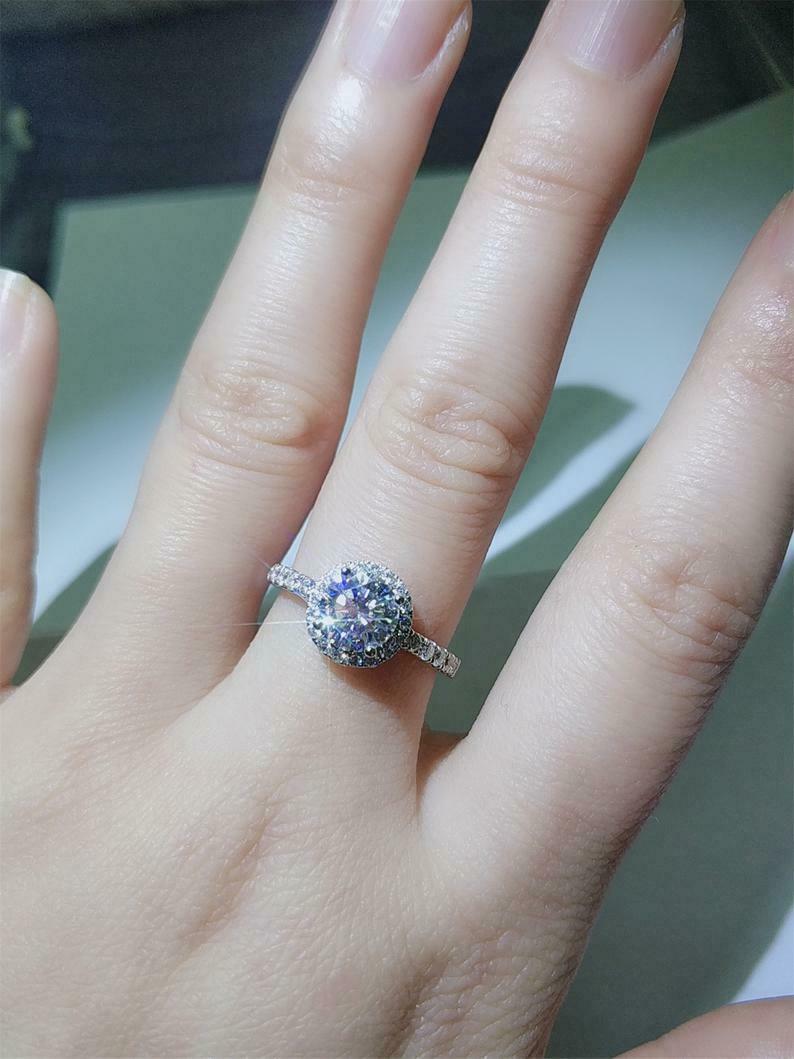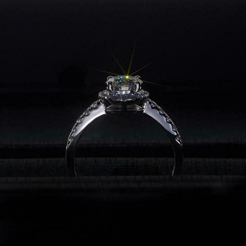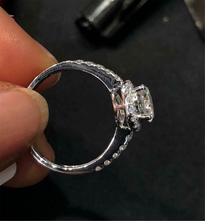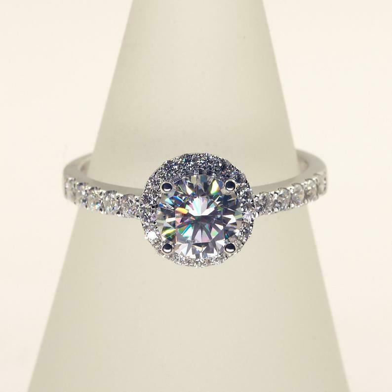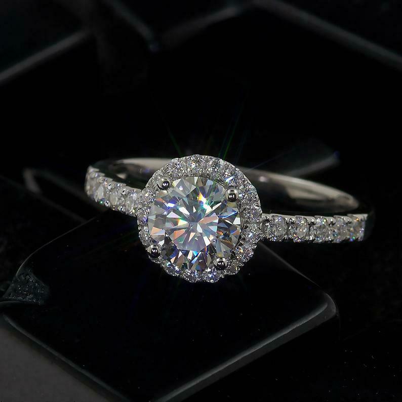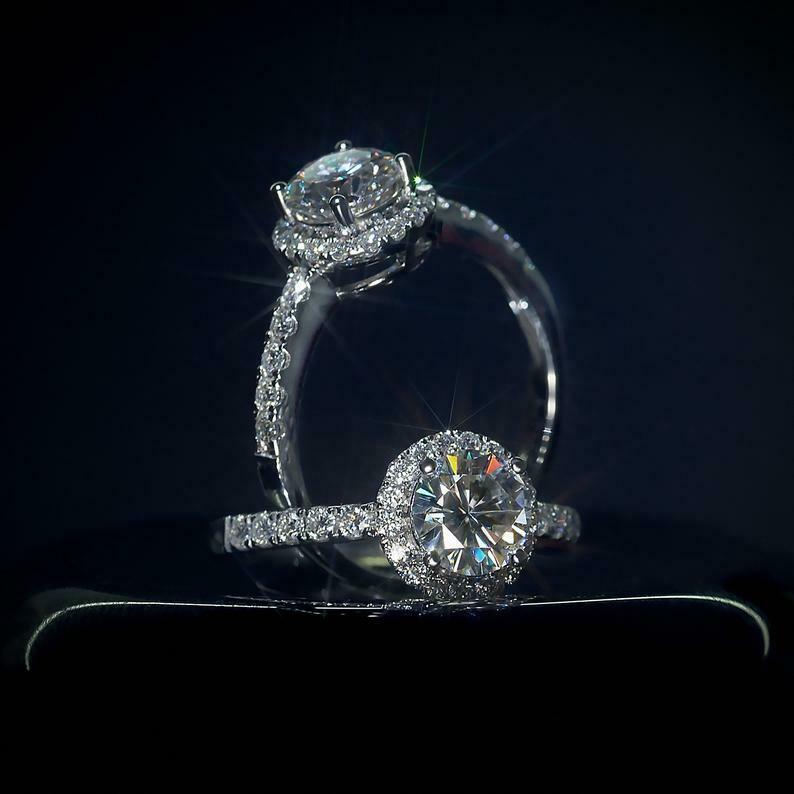 1.8ct Round Cut Diamond Engagement Ring Solitaire Halo 14k White Gold Finish