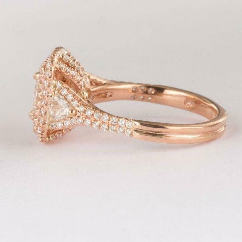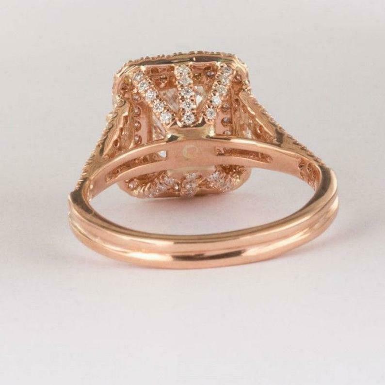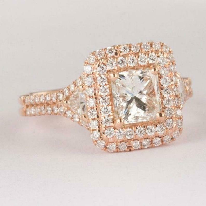 1.92ct Princess Cut Diamond Engagement Ring Dual Halo Iced 14k Rose Gold Finish