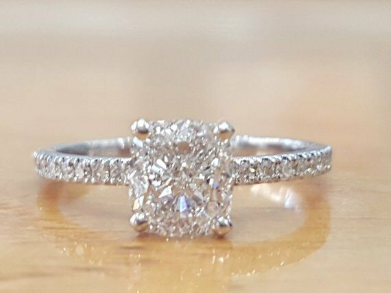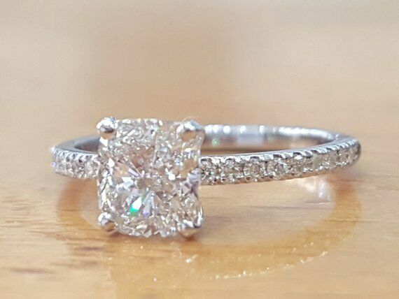 1.9ct Cushion Cut Diamond Accents Solitaire Engagement Ring 14k WhiteGold Finish