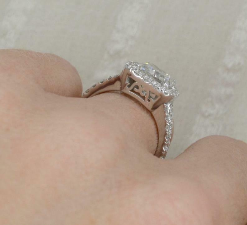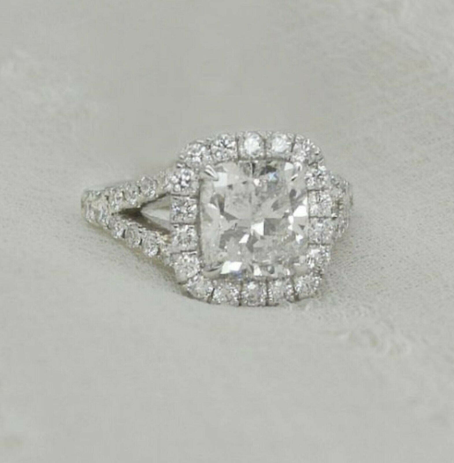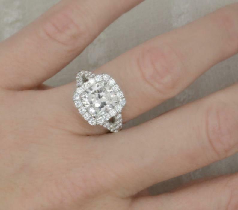 1.9ct Cushion Cut Diamond Engagement Ring Halo Split Shank 14k White Gold Finish