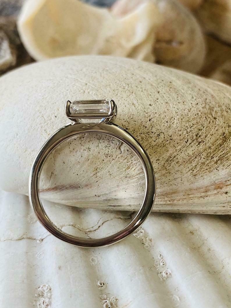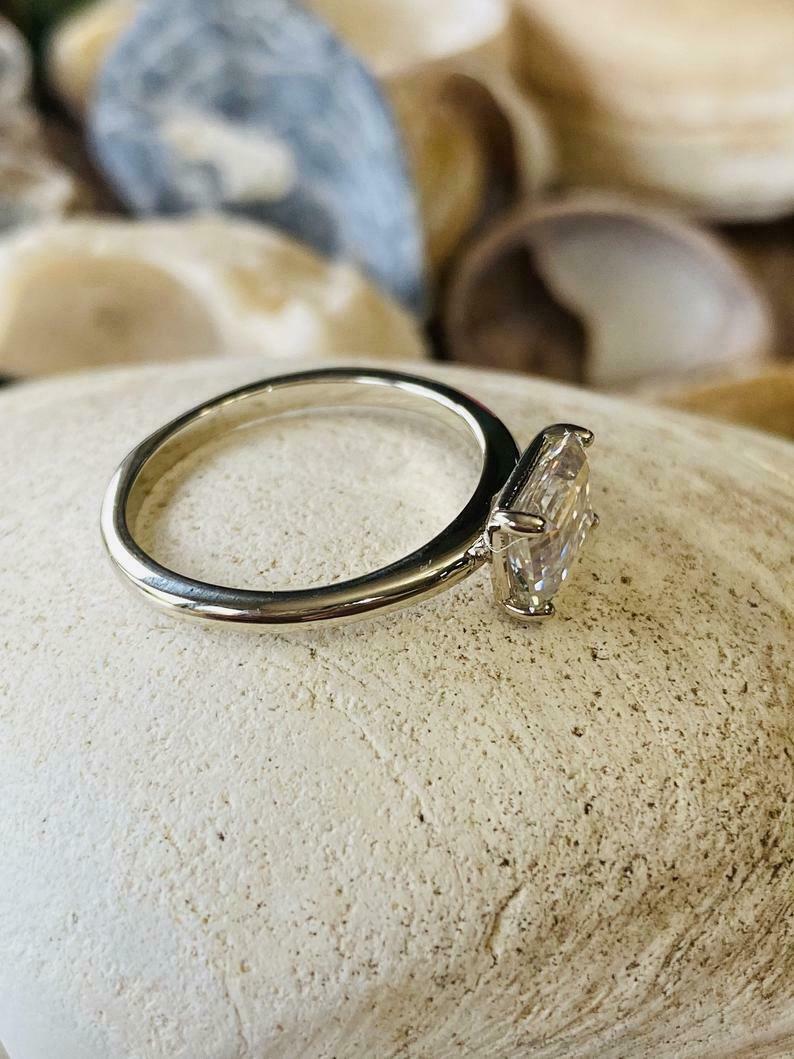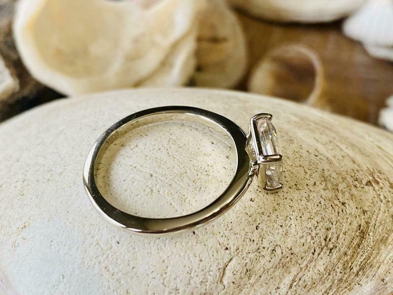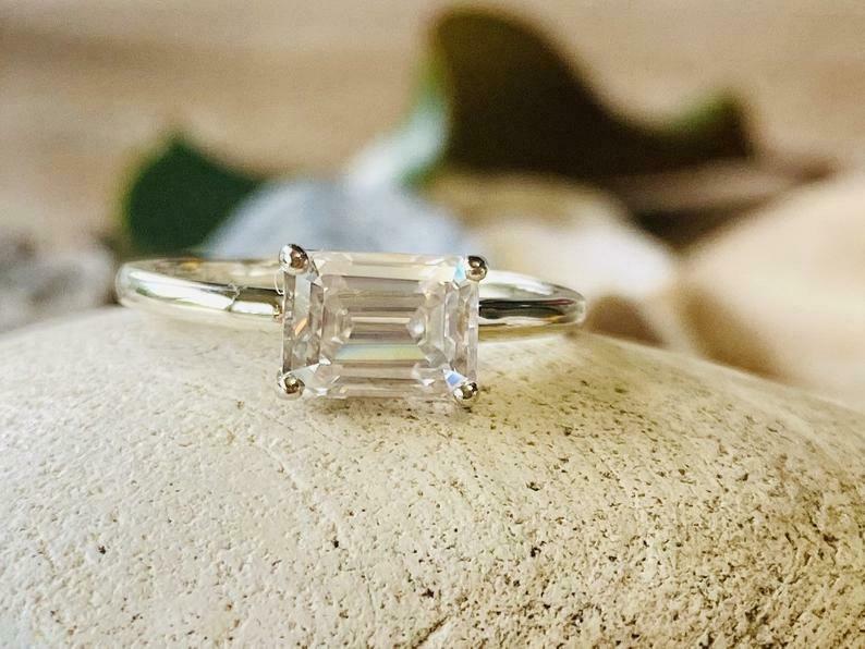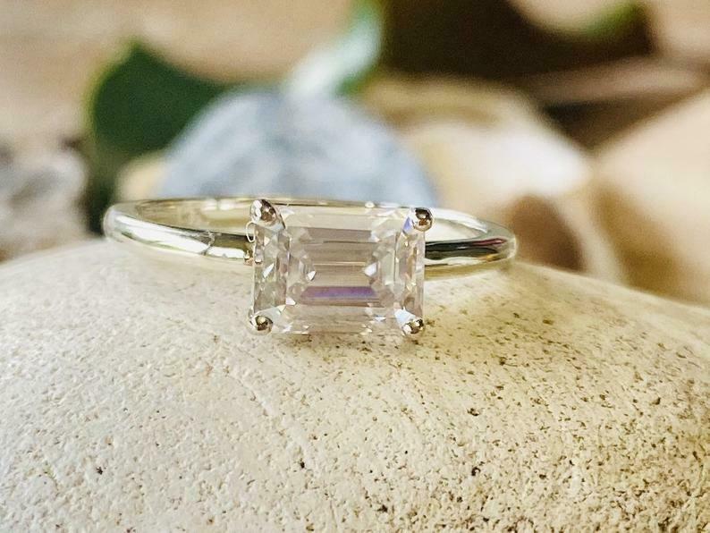 1.9ct Engagement Ring Emerald Cut Diamond Solitaire Design 14k White Gold Finish