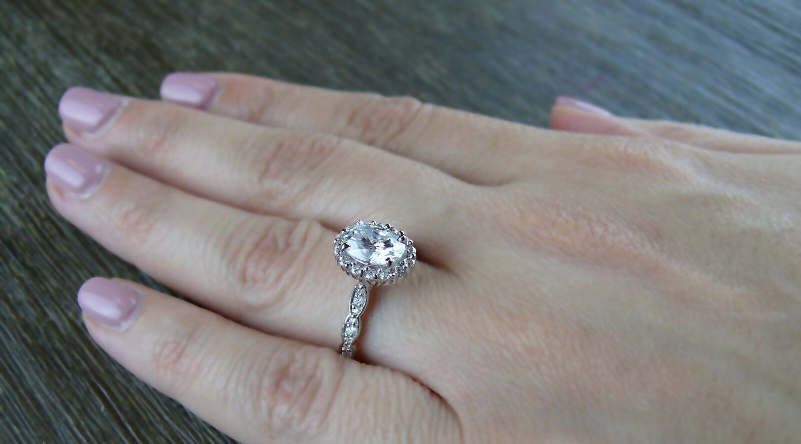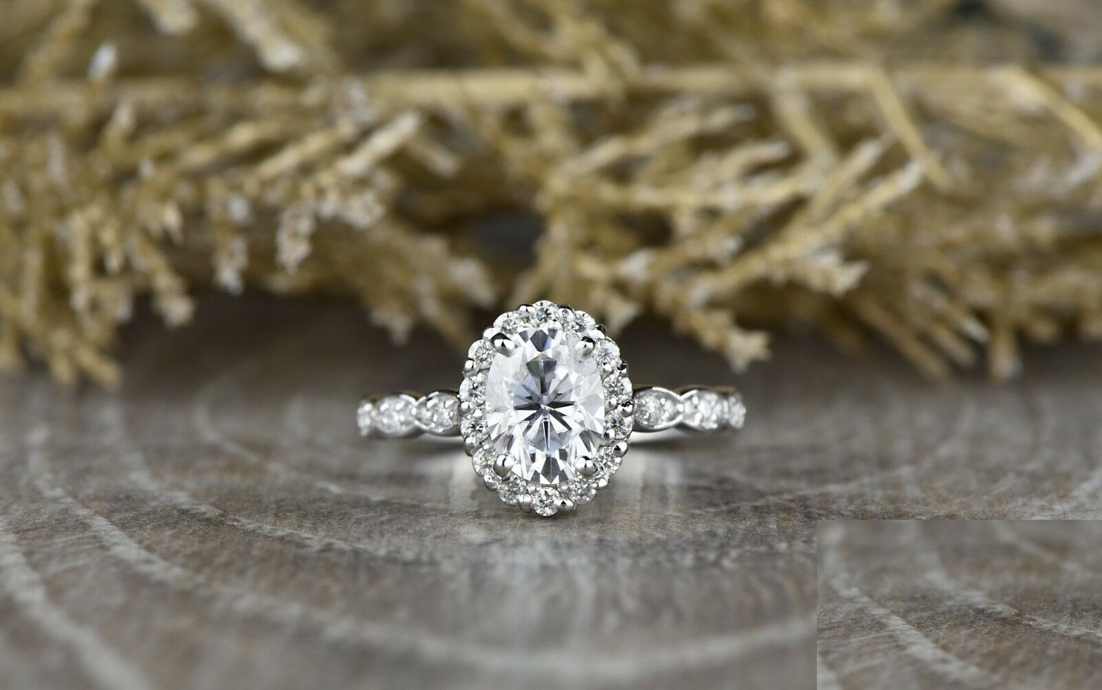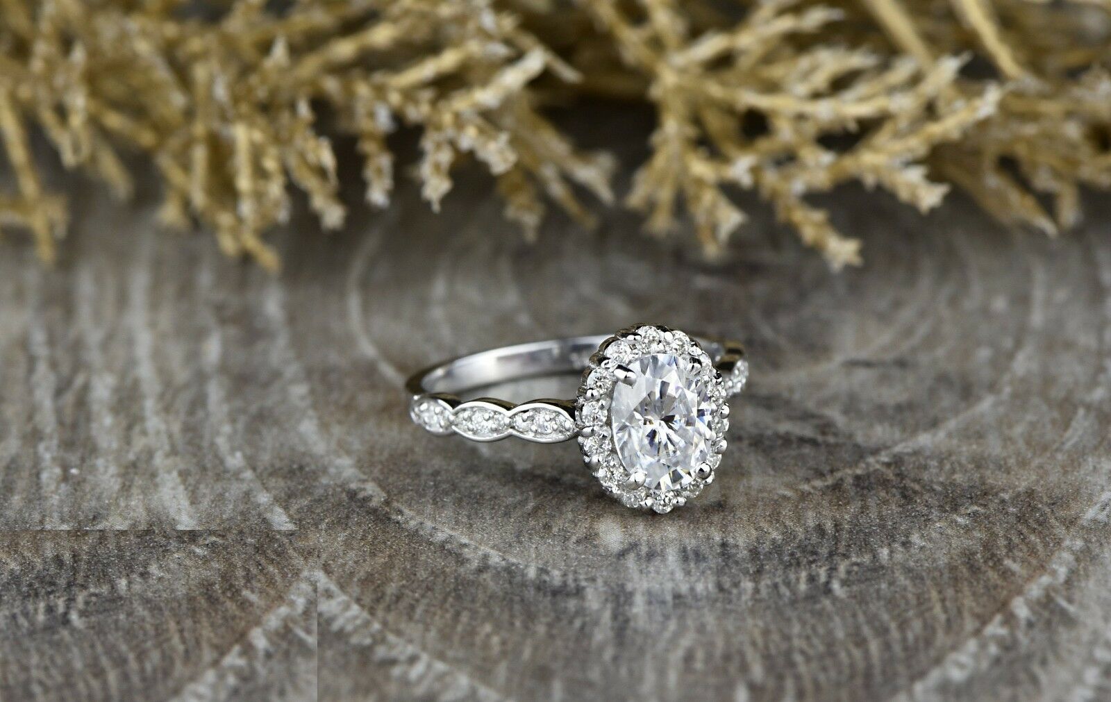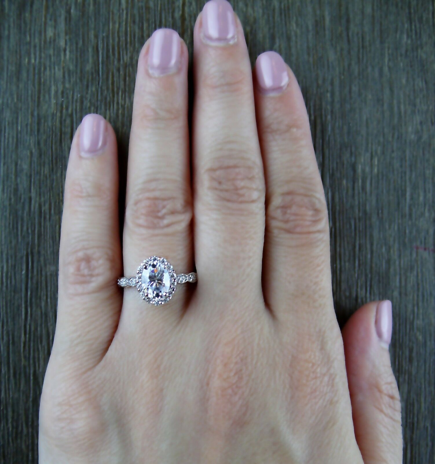 1.9ct Oval Cut Diamond Engagement Ring 14k White Gold Finish Halo Bridal Promise