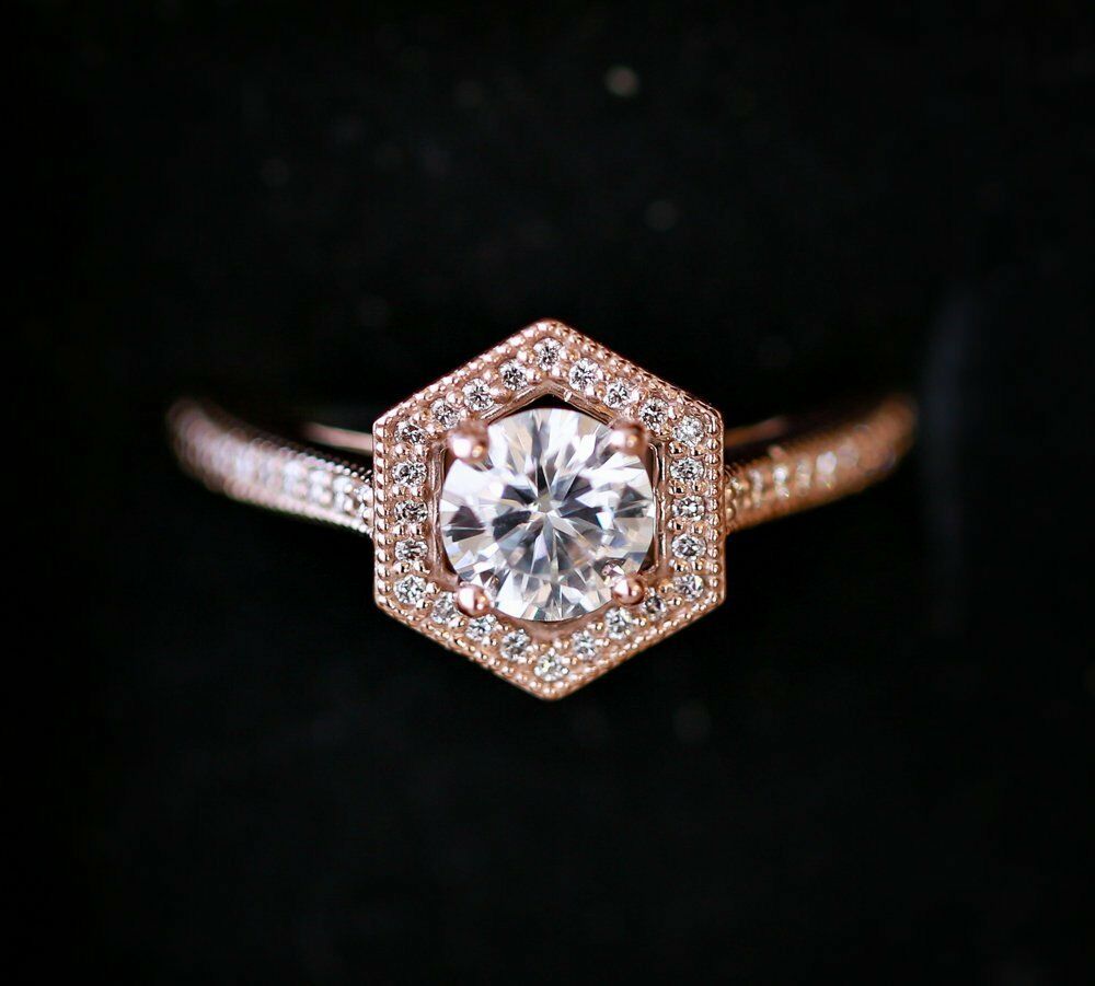 1.9ct Round Cut Diamond Engagement Ring 14k Rose Gold Over Halo Accent Solitaire