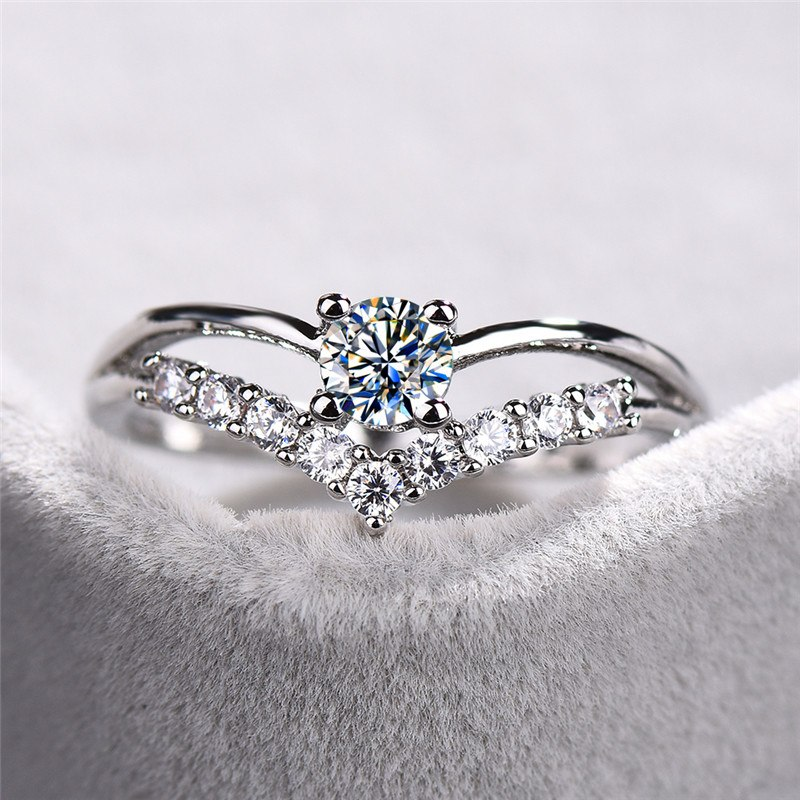 1.9ct Round Cut Diamond Engagement Ring 14k White Gold Finish V Shape Split Band