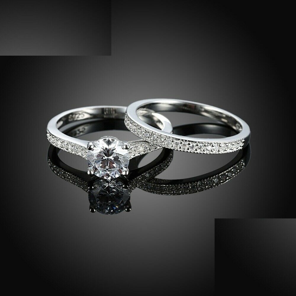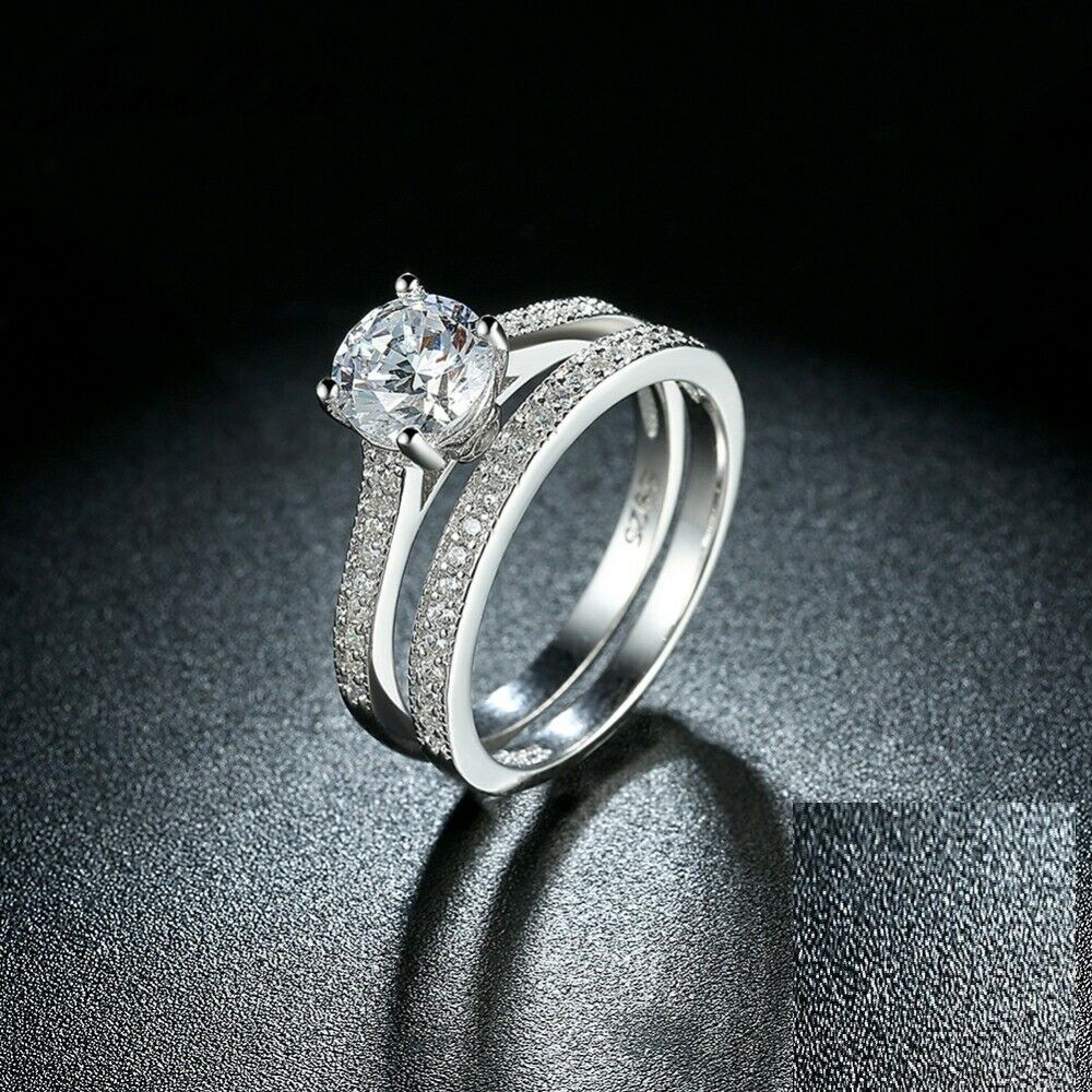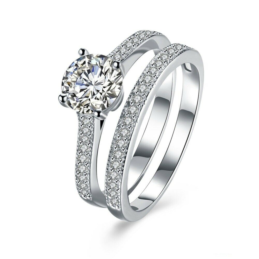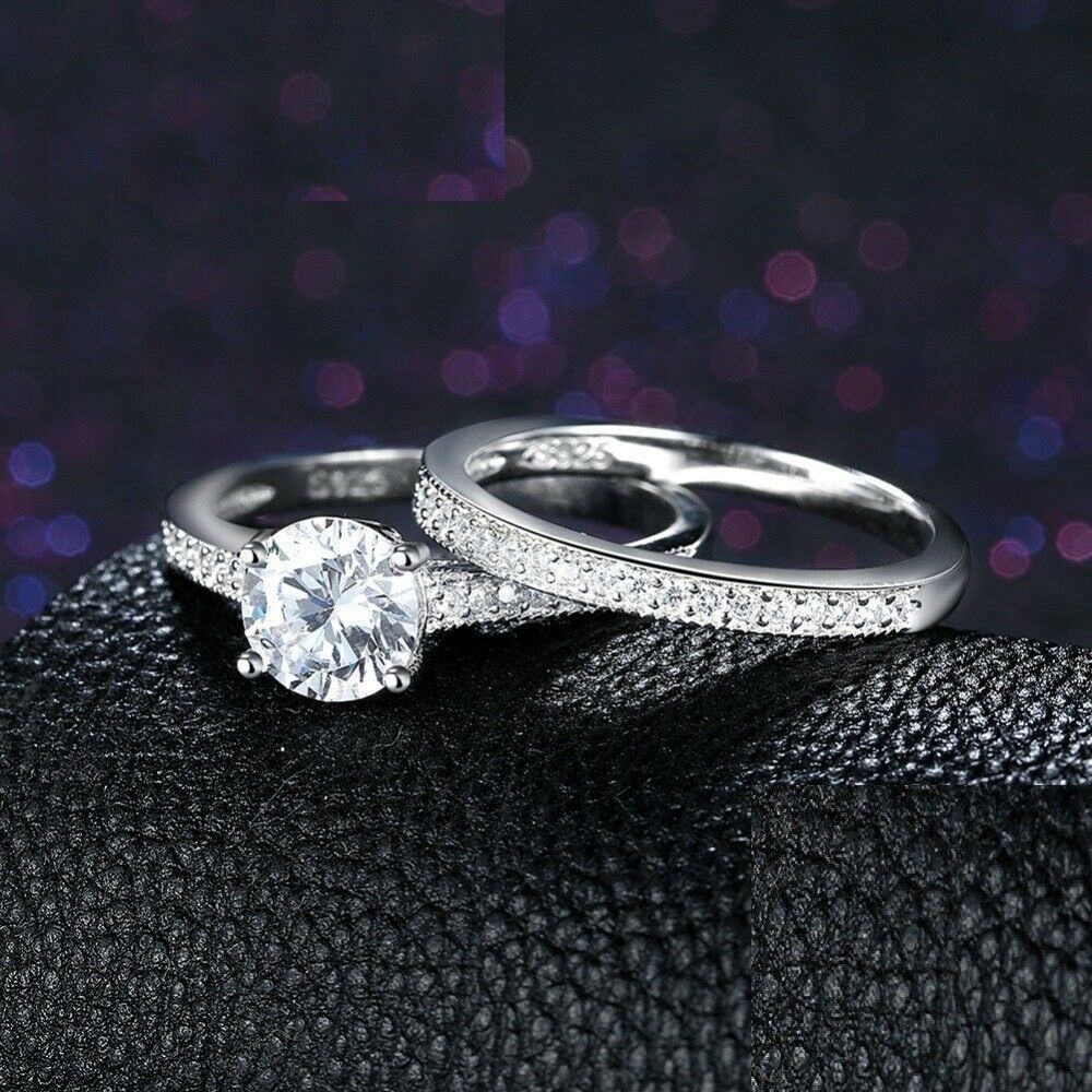 1.9ct Round Cut Diamond Engagement Ring 14k White Gold Finish Women Bridal Set