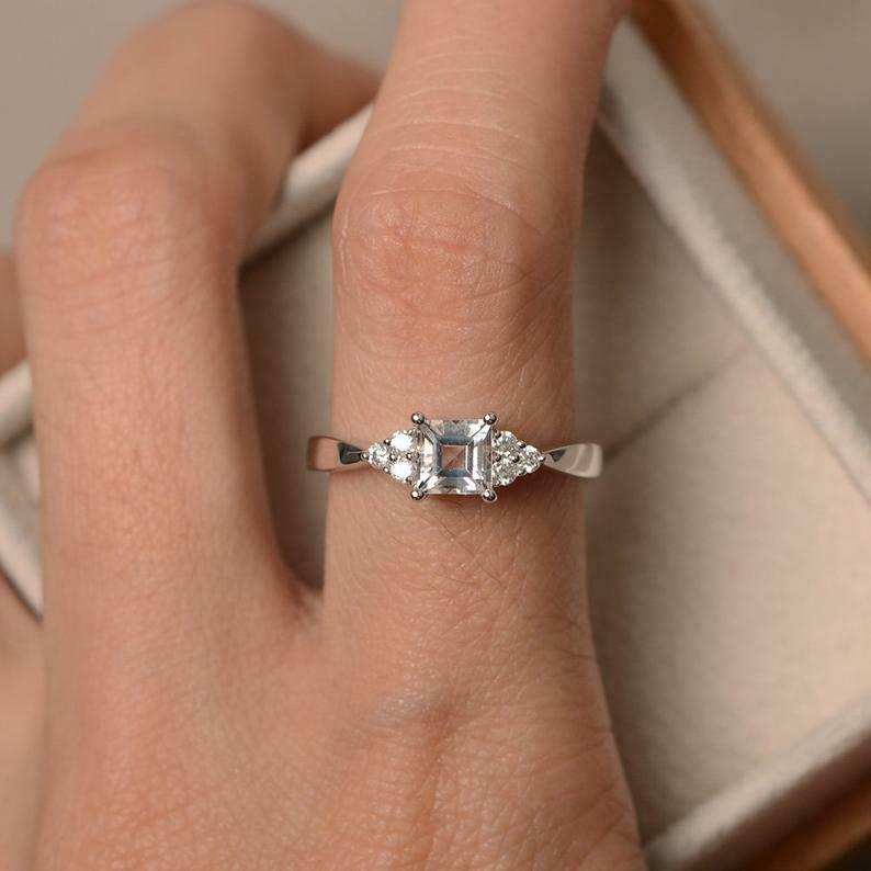 1ct Asscher Cut Diamond Petite Round Accents Engagement Ring 14k White Gold Over