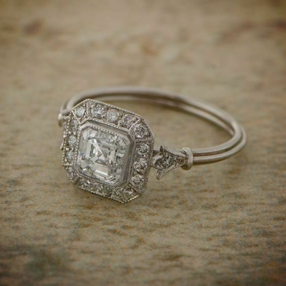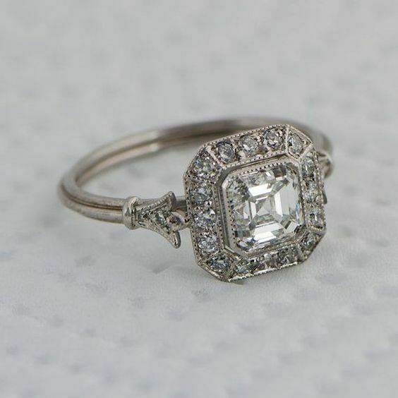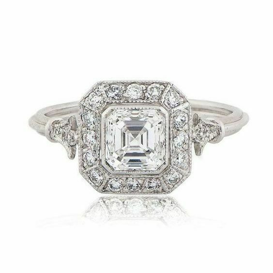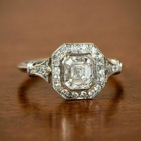 1Ct Asscher Cut DVVS1 Diamond Vintage Halo Engagement Ring 14K White Gold Finish