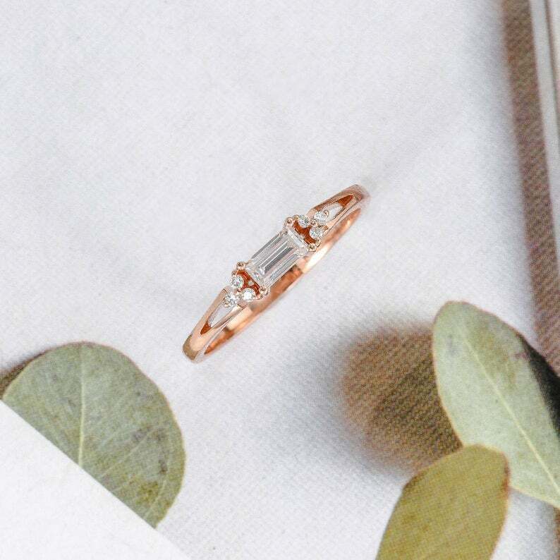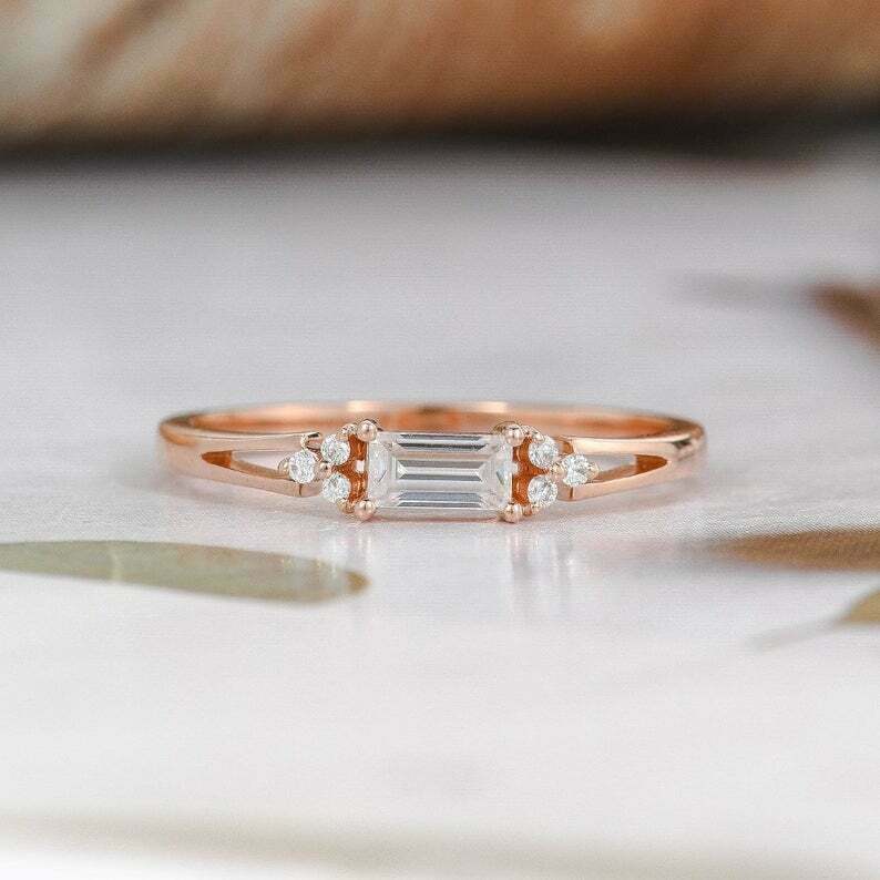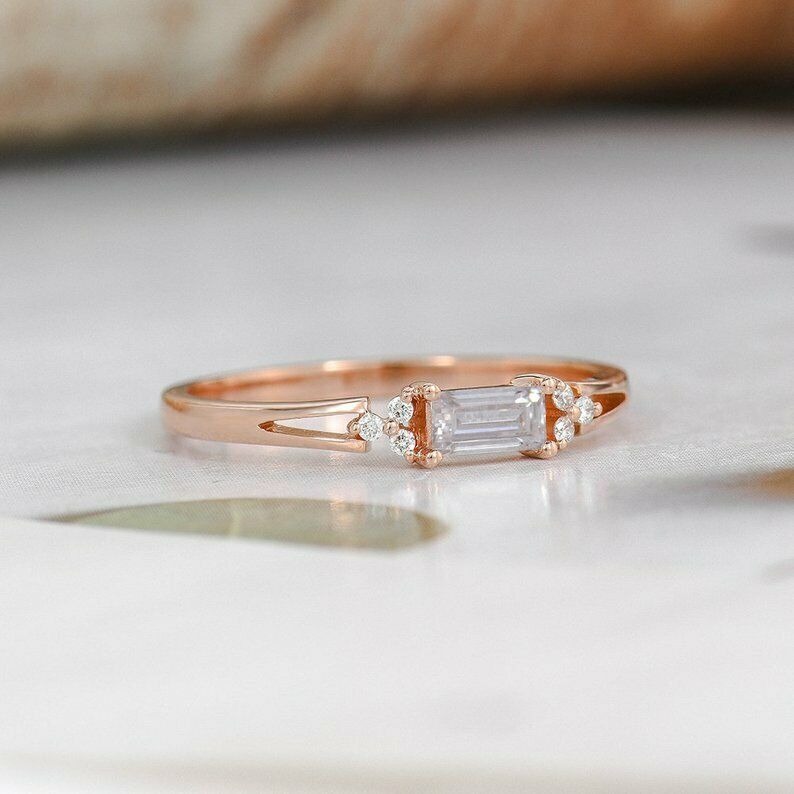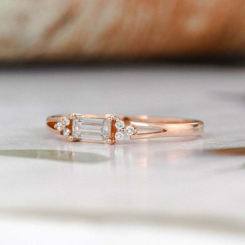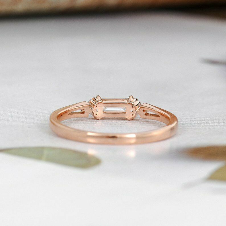 1ct Baguette Cut Diamond Engagement Ring Petite Minimalist 14k Rose Gold Finish