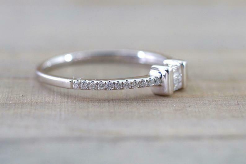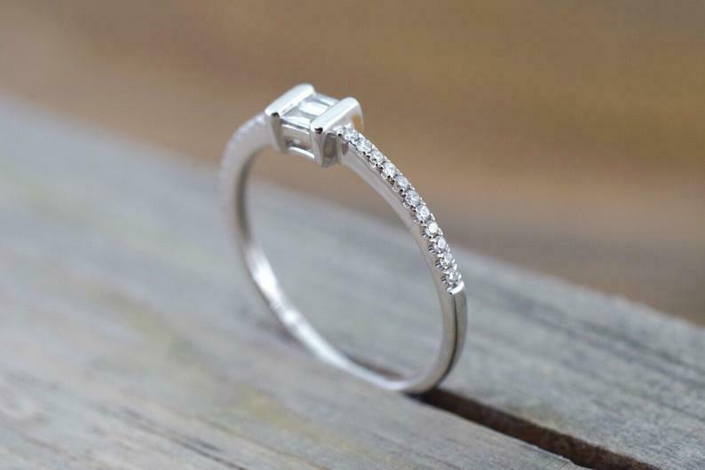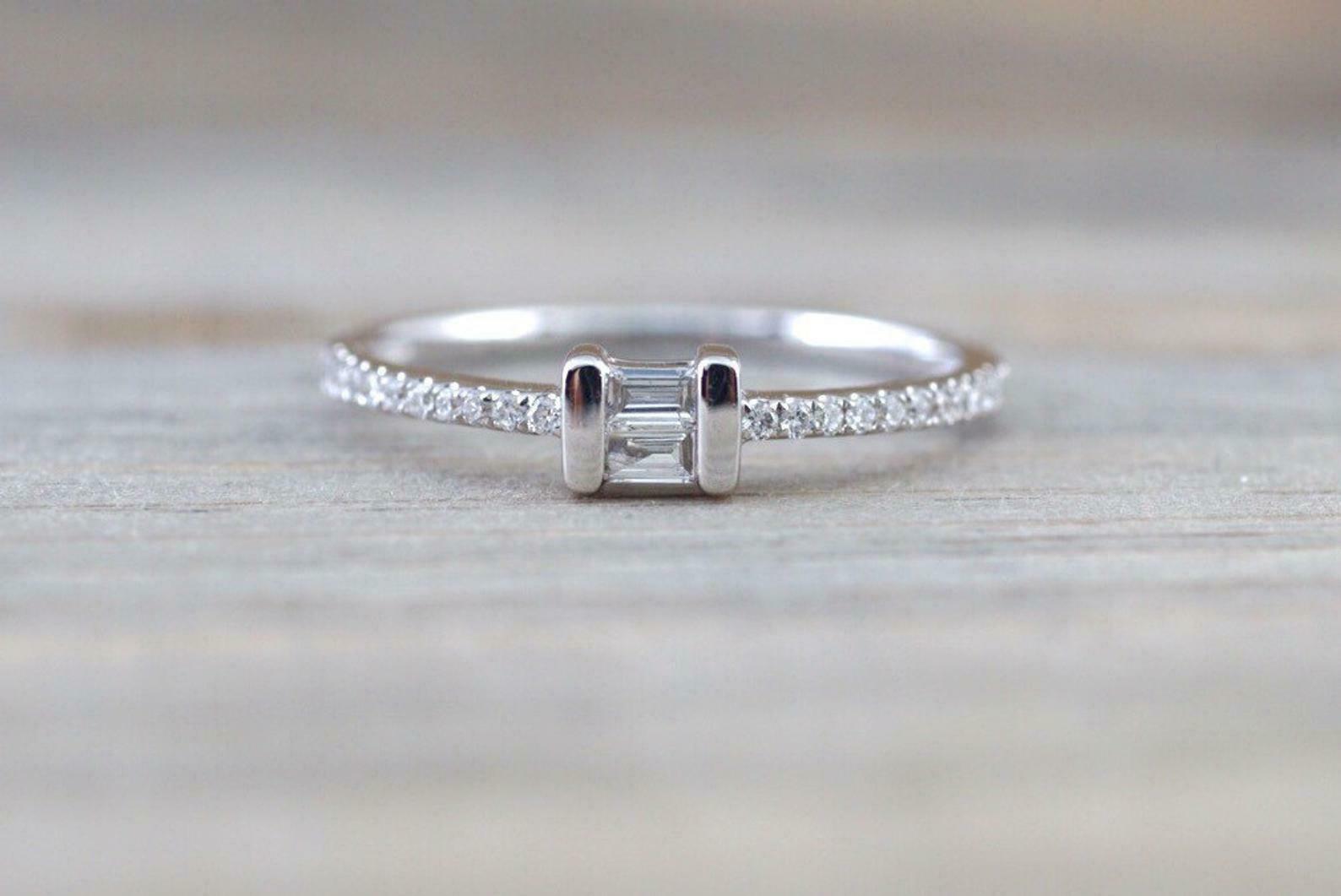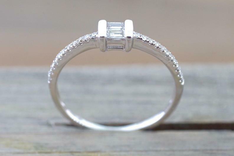 1ct Baguette Cut Diamond Engagement Ring Petite Minimalist 14k White Gold Finish