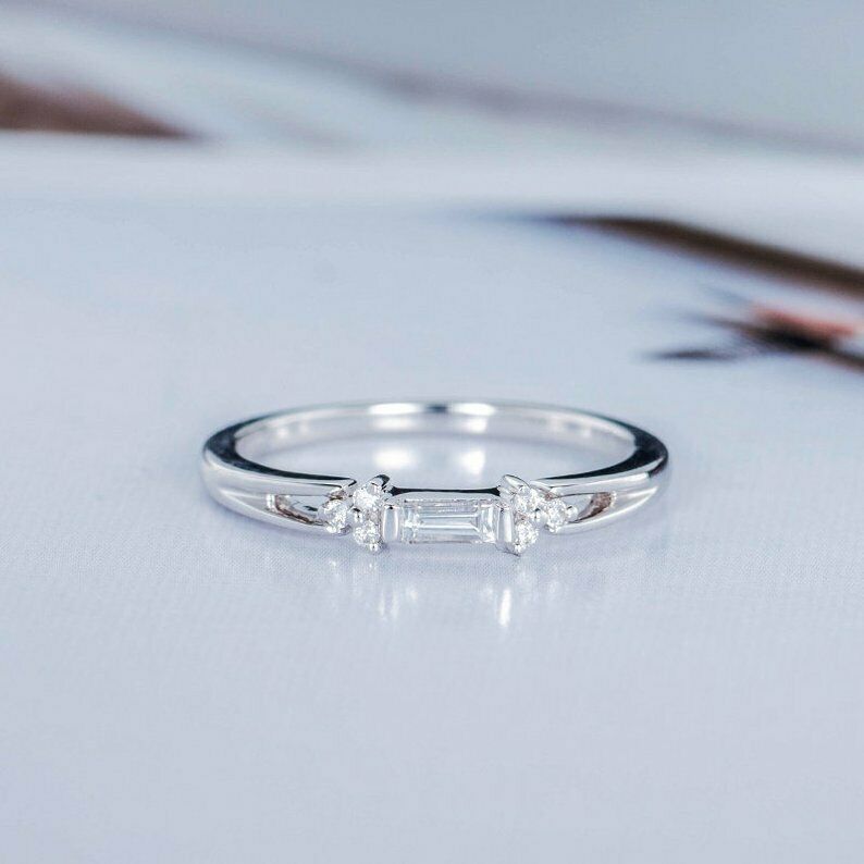 1ct Baguette Cut Diamond Engagement Ring Petite Minimalist 18k White Gold Finish
