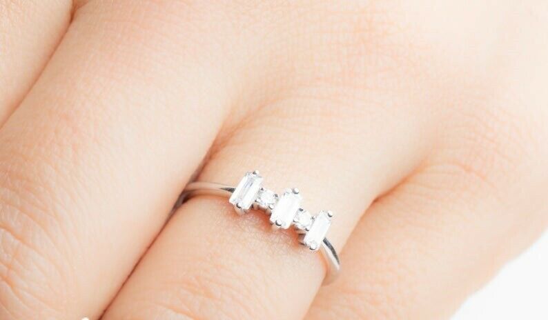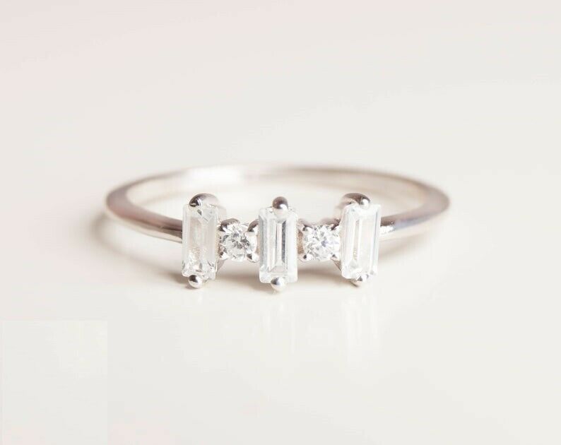 1ct Baguette Cut Diamond Engagement Ring Stackable Minimalist 14k WhiteGold Over