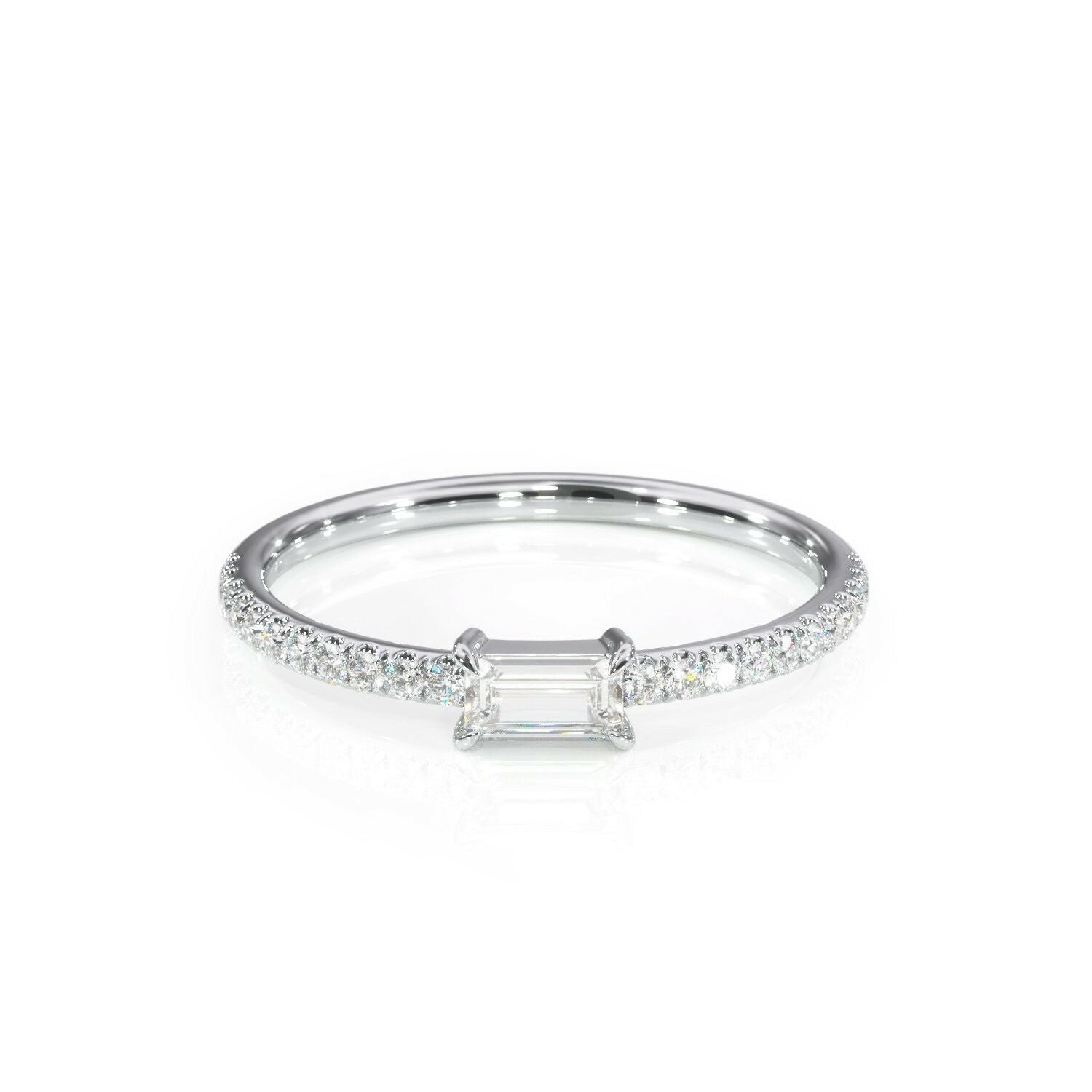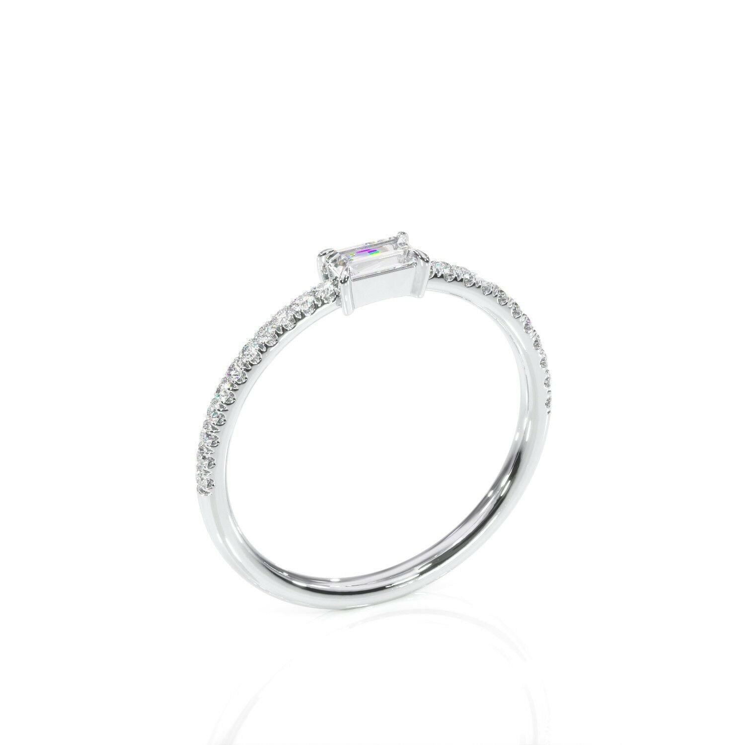 1Ct Baguette Cut Diamond Slim Minimalist Wedding Ring Band 14K White Gold Finish